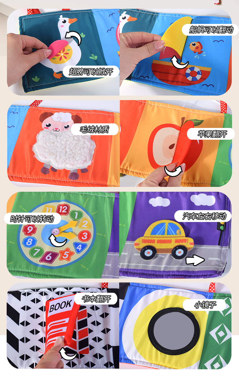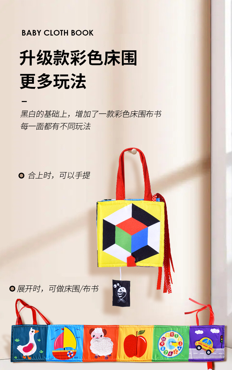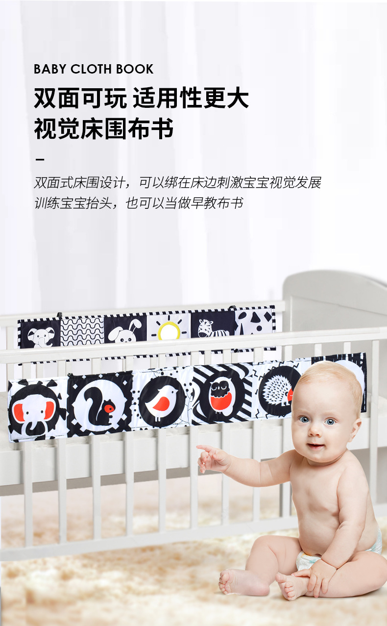 Blanco y negro de doble cara harén cama de bebé circunferencia libro de tela bebé libro de tela tridimensional a prueba de lágrimas juguetes de educación temprana