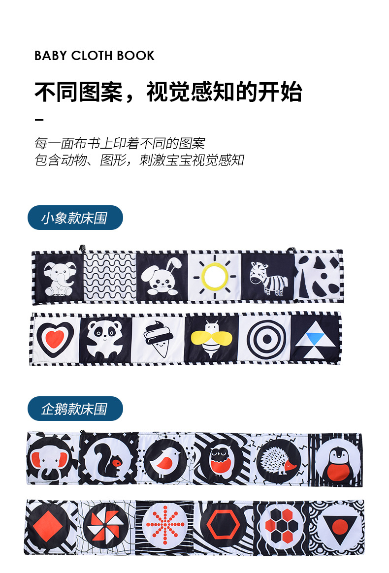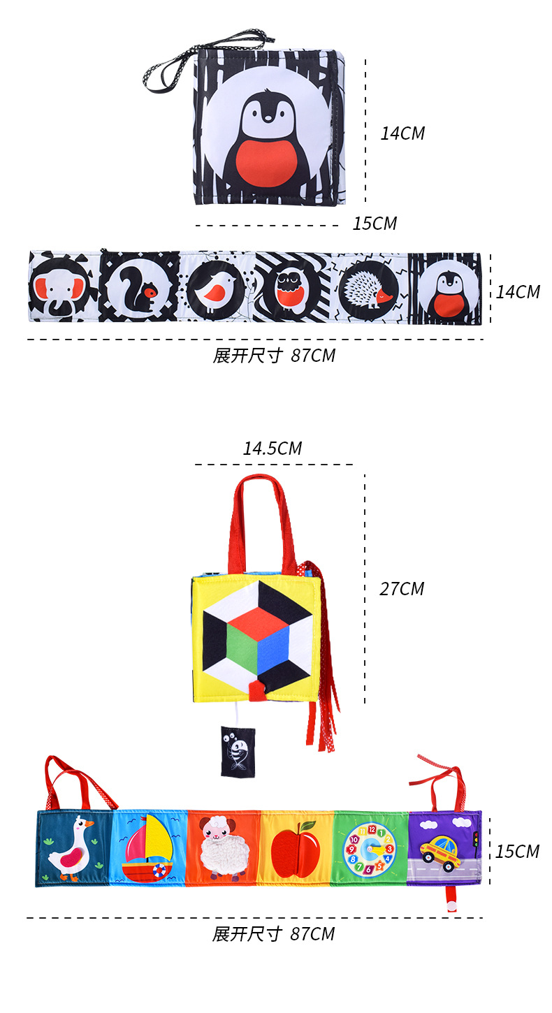 | Colores | Pequeño elefante con espejo libro de tela de cama en blanco y negro (bolsa opp) 44g,Libro de tela de cama blanco y negro pingüino (bolsa opp) 54g,Bufanda cuadrada calmante en blanco y negro con mordedor (bolsa),Colgante cuadrado blanco y negro (bolsa),Colgante cilíndrico blanco y negro (bolsa),Colgante triangular blanco y negro (bolsa) |