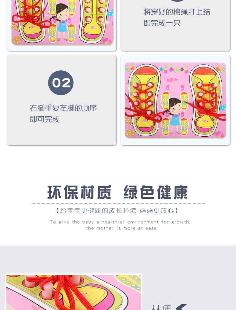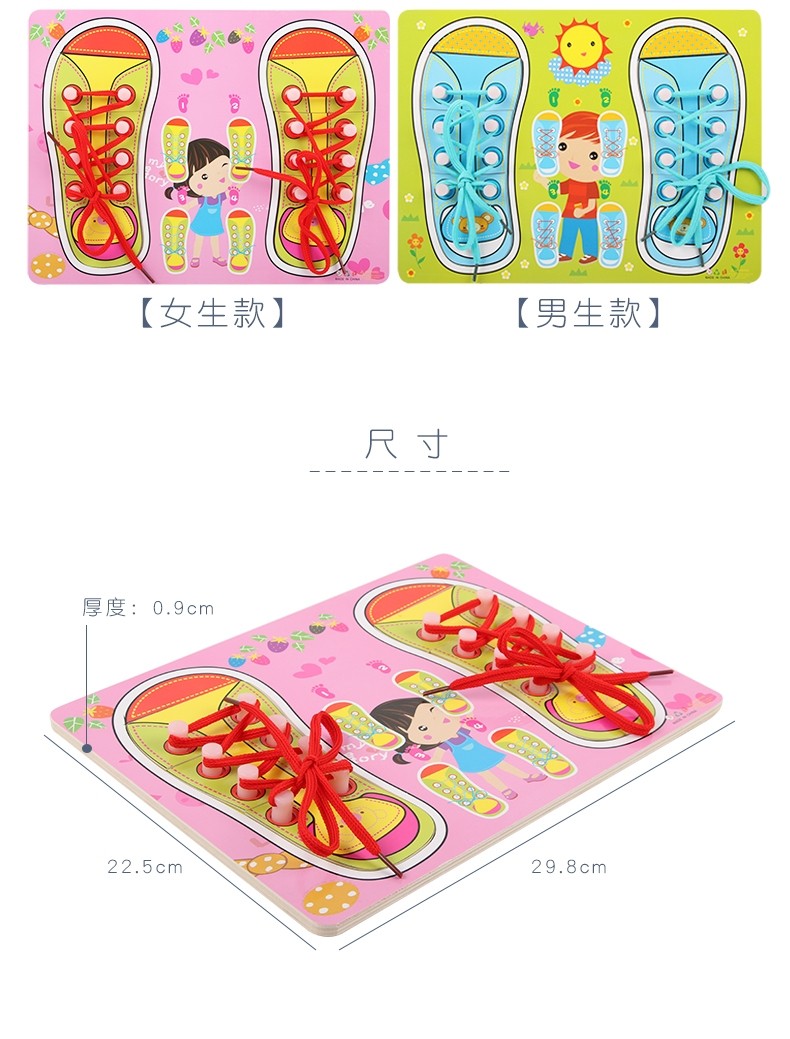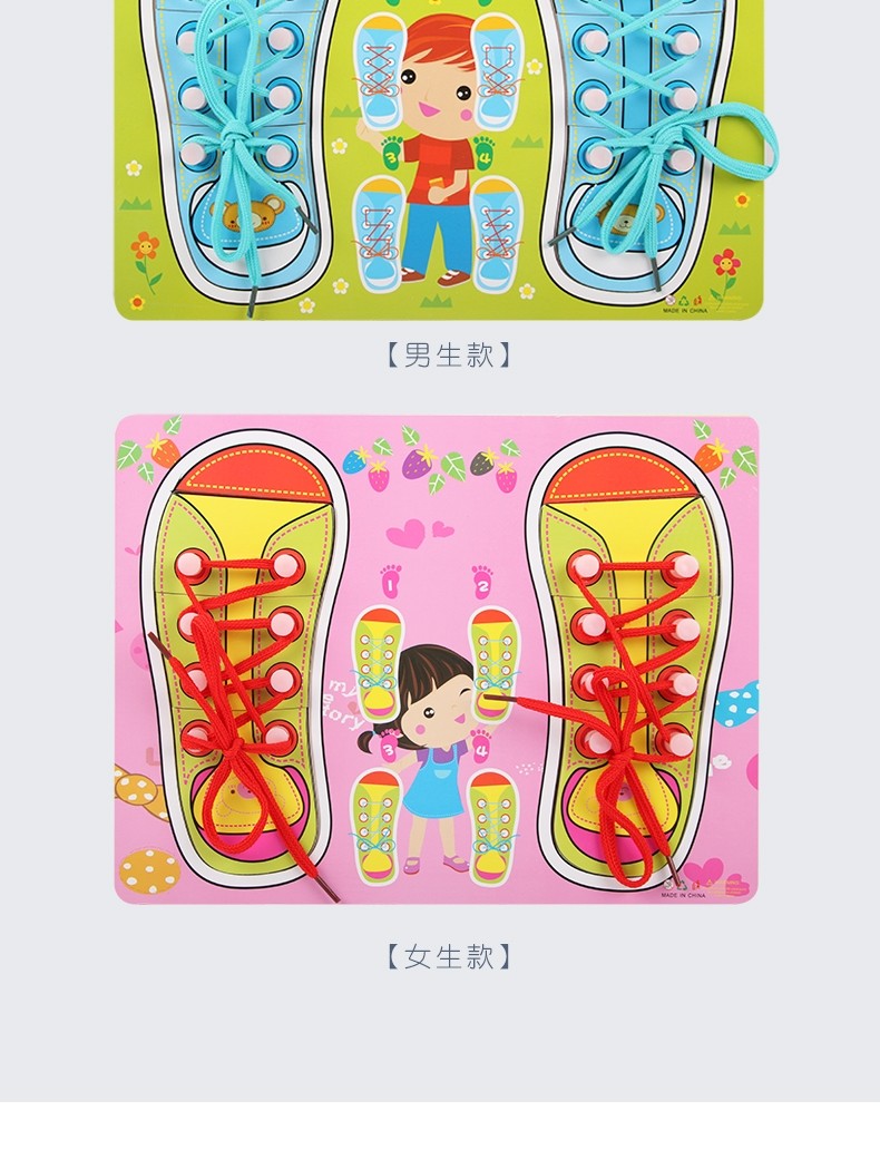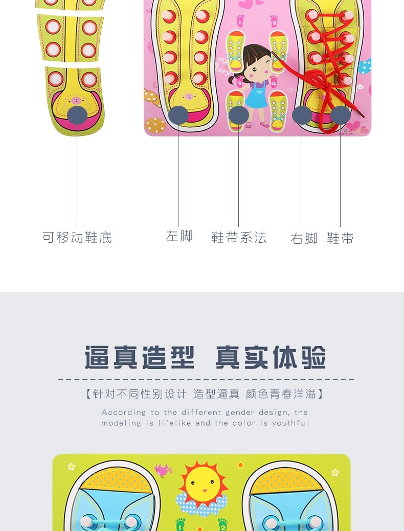 Montessori material didáctico divertido rompecabezas con cordones zapatos tablero niños y niñas bebé práctica kindergarten educación temprana