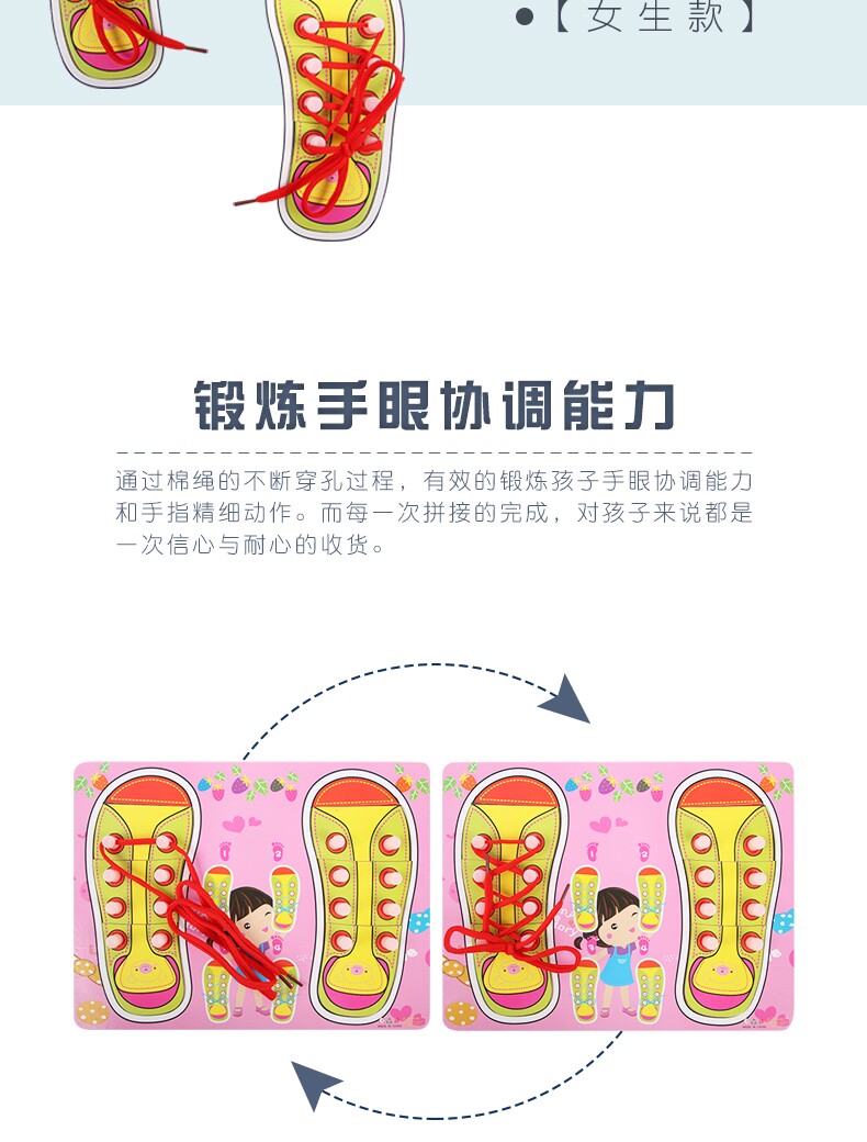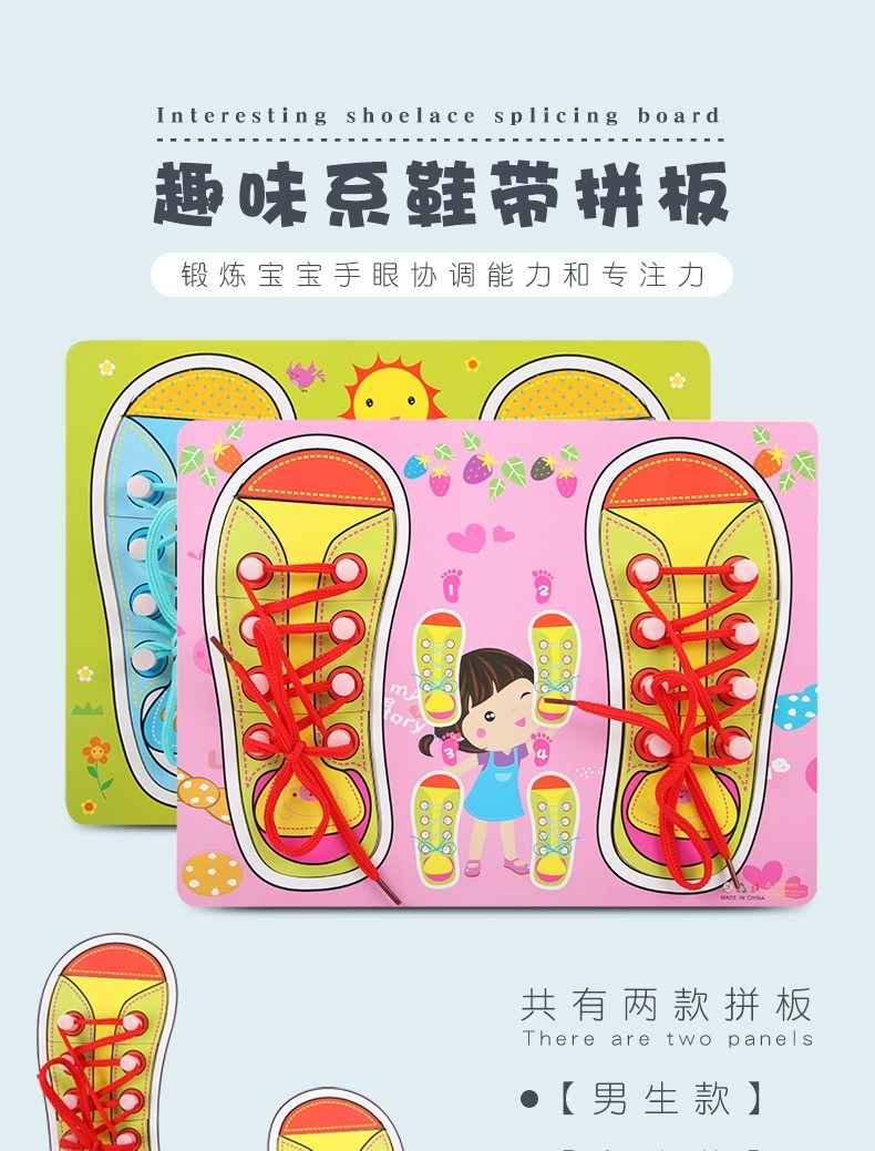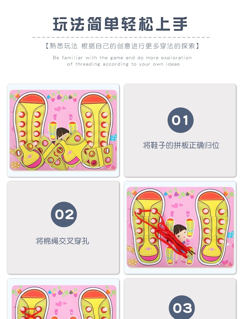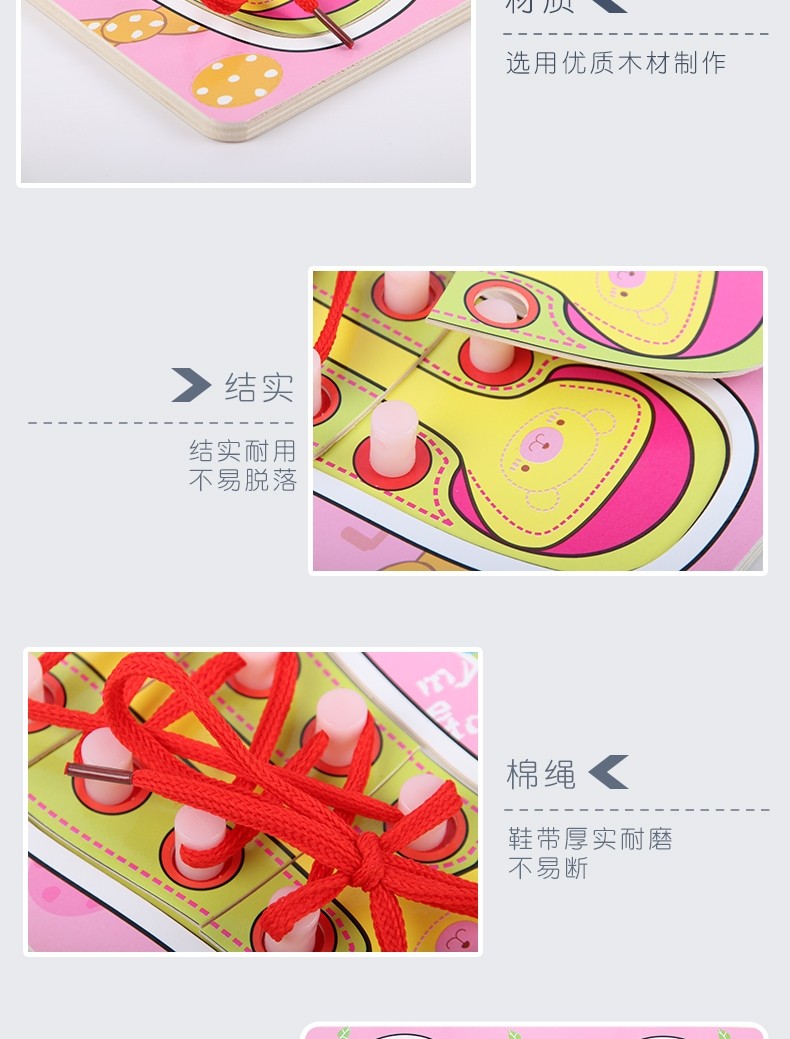 Montessori material didáctico divertido rompecabezas con cordones zapatos tablero niños y niñas bebé práctica kindergarten educación temprana