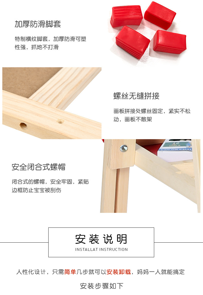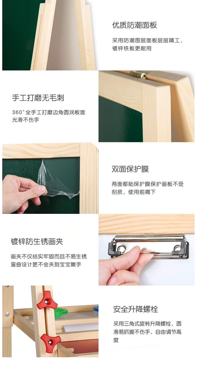 Suministro directo de fábrica de madera maciza pequeña pizarra de madera magnética de doble cara ajustable soporte de caballete tablero de escritura tablero de dibujo