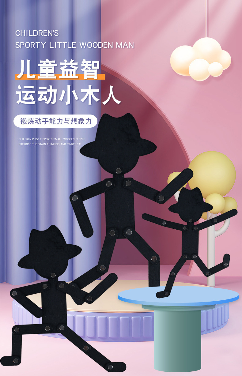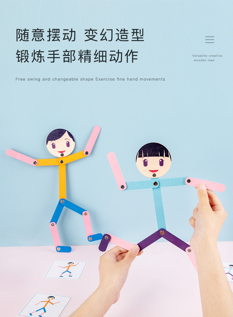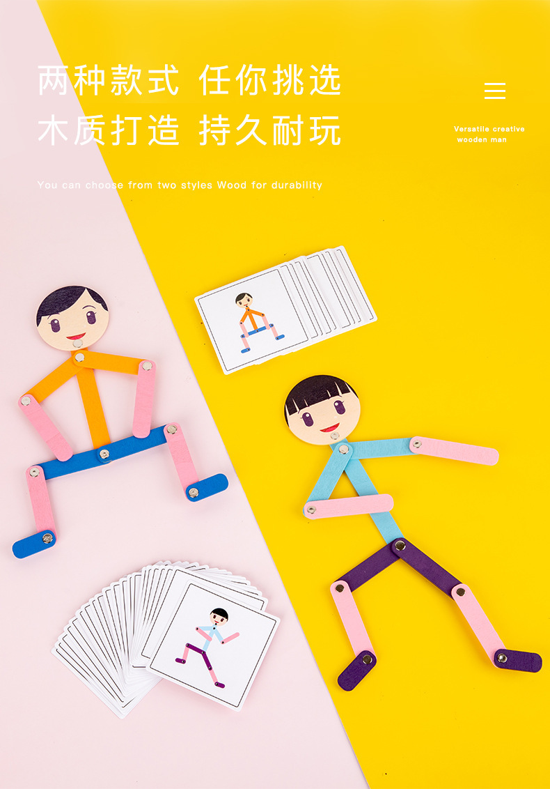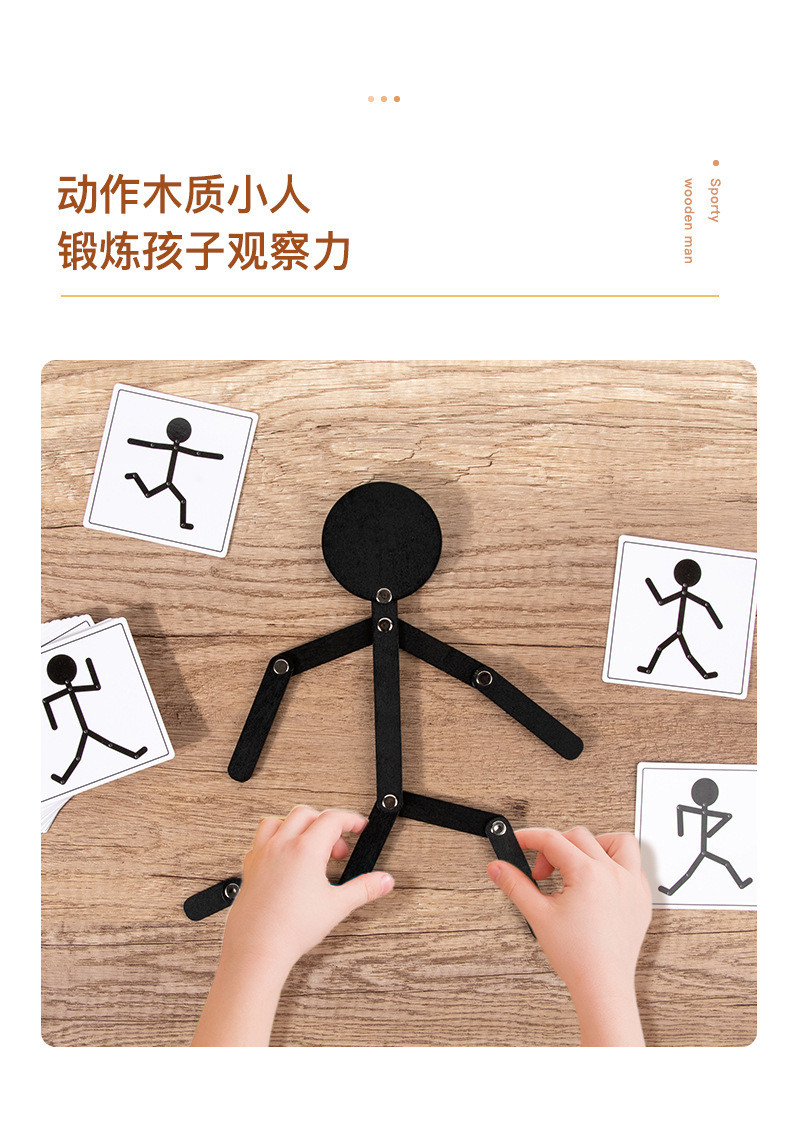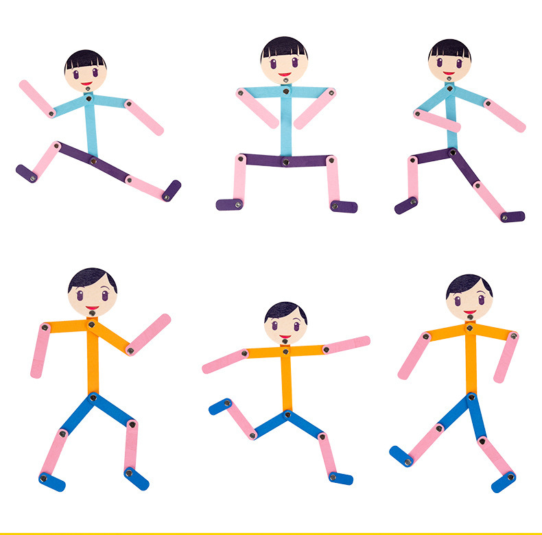 Weiweihu Wood Sports villano flexible y siempre cambiante creativo Stickman Niños Entrenamiento de coordinación mano-ojo Juguetes de madera