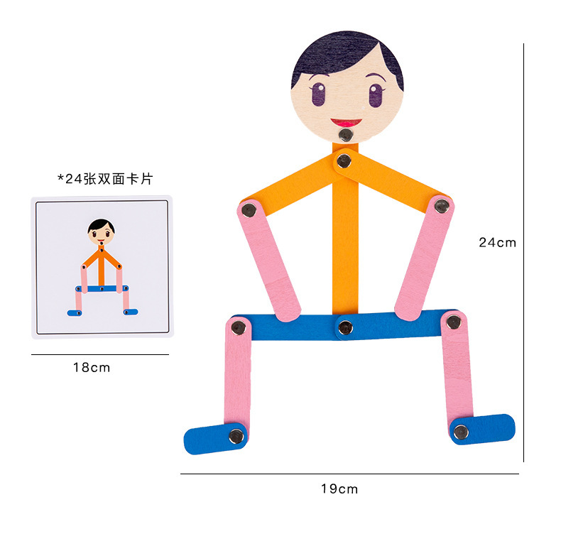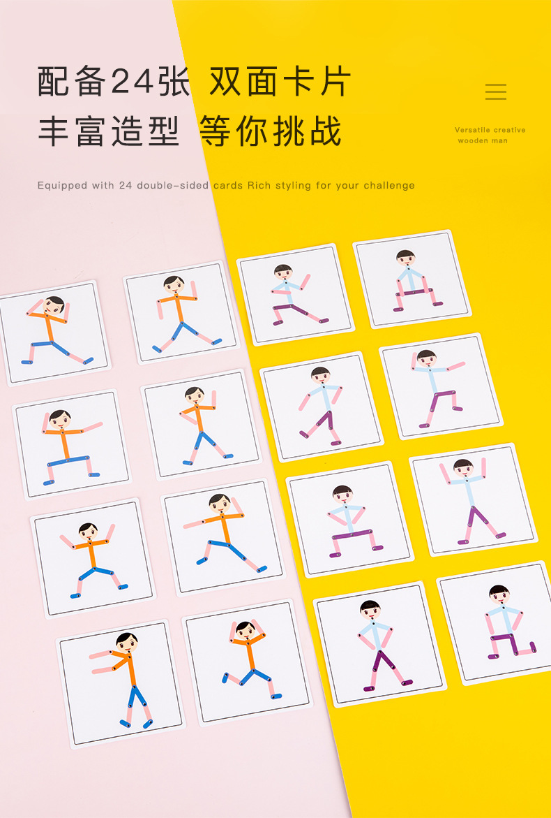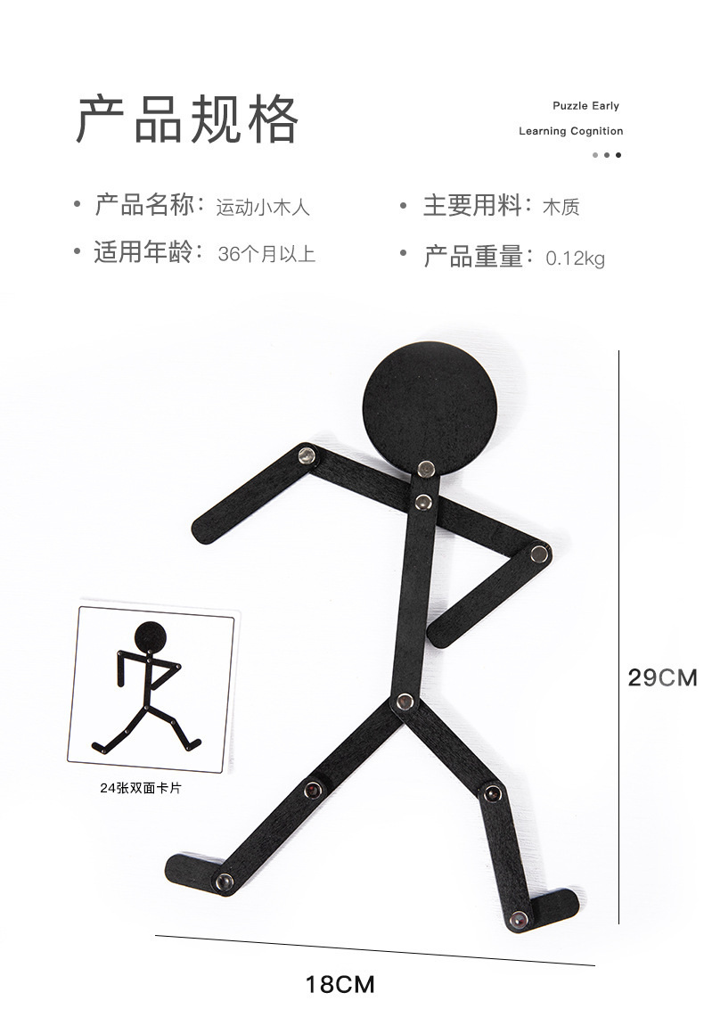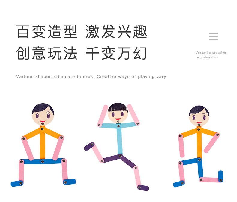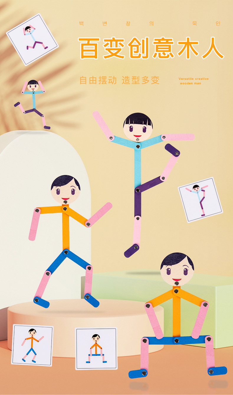 Weiweihu Wood Sports villano flexible y siempre cambiante creativo Stickman Niños Entrenamiento de coordinación mano-ojo Juguetes de madera