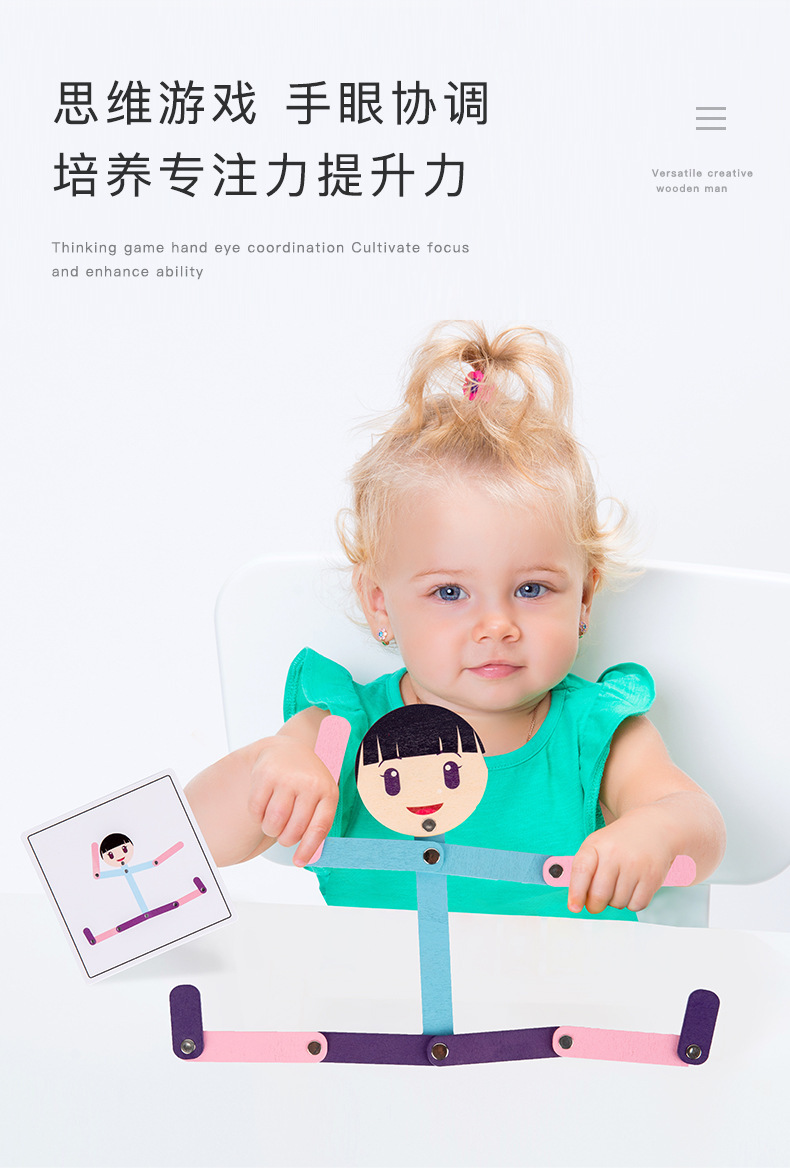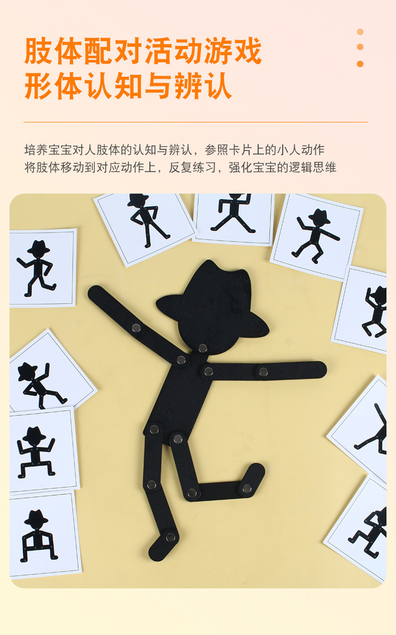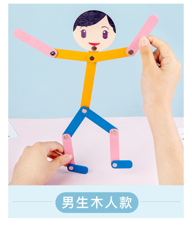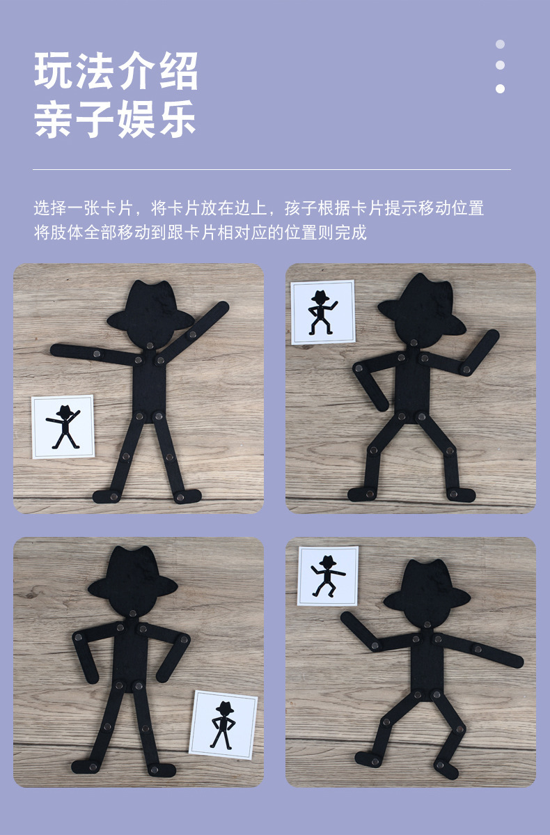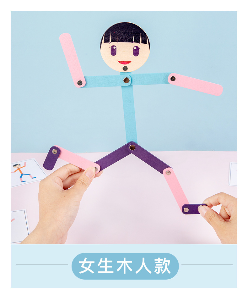Weiweihu Wood Sports villano flexible y siempre cambiante creativo Stickman Niños Entrenamiento de coordinación mano-ojo Juguetes de madera