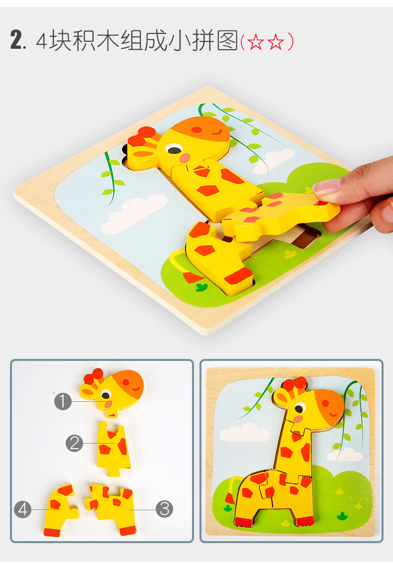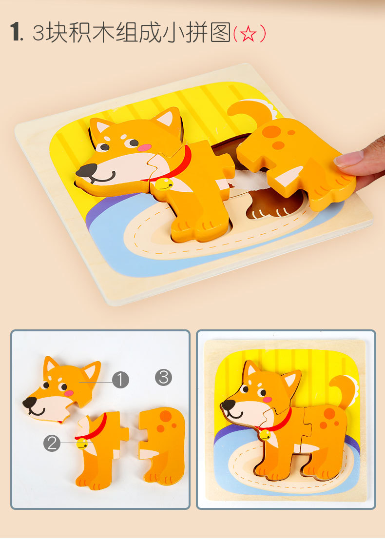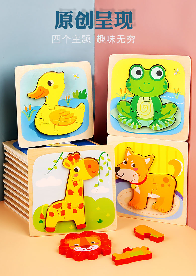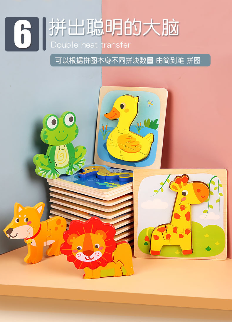 Juguetes de rompecabezas tridimensionales 3D para niños, educación temprana, rompecabezas, bloques de construcción para bebés de 1-3-6 años, juguetes de madera, puestos callejeros