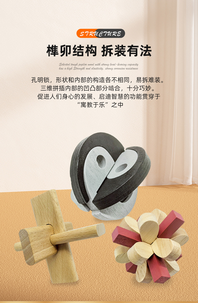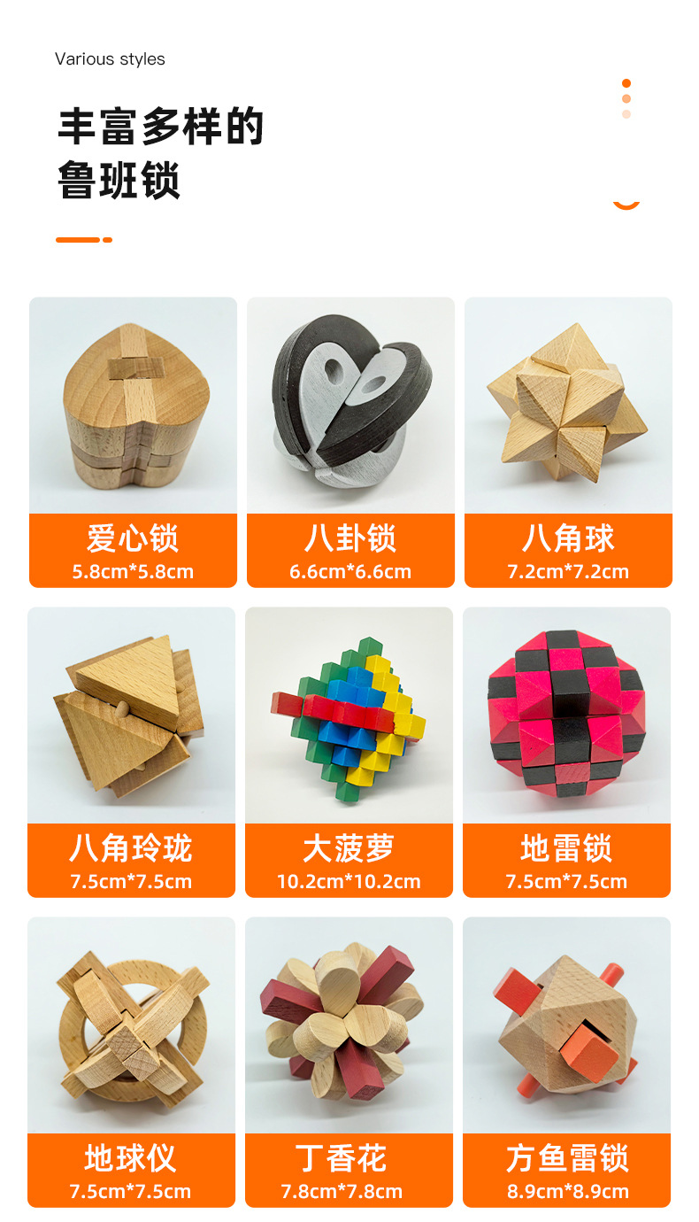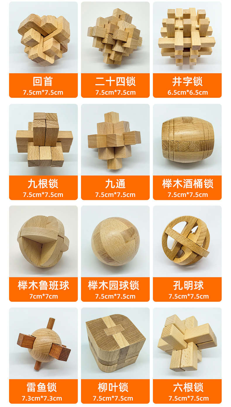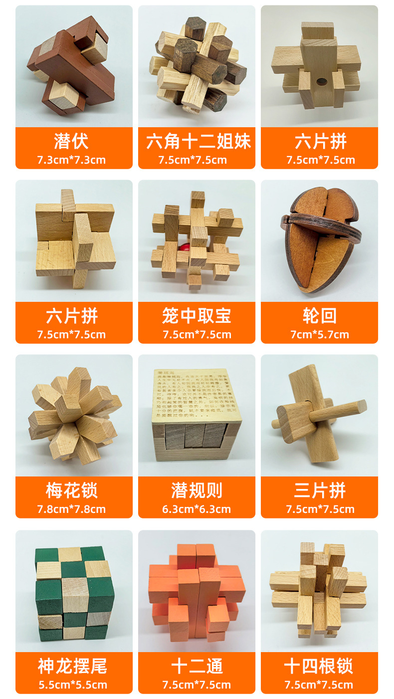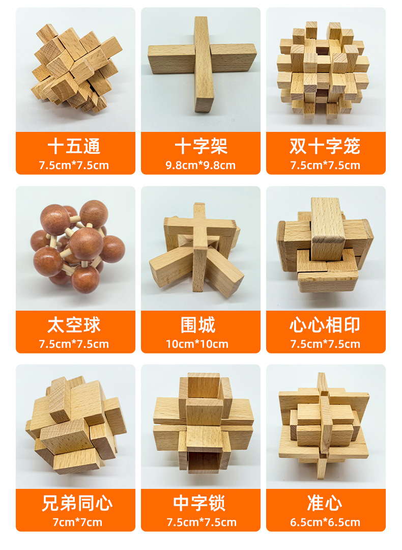 Kong Ming Lock Luban Lock Set Juguetes educativos para niños Estudiantes de primaria 7 años Descompresión intelectual Nueve bloques de construcción de cadena Personalización