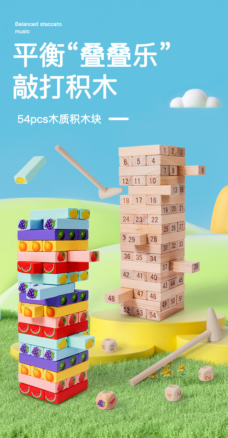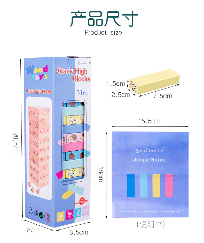 Weiweihu Kids Digital Jenga Jenga Game Juego de mesa Bloques de construcción Juguetes educativos Die Die Gao
