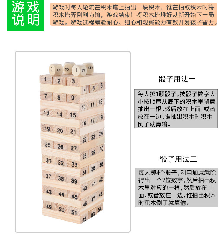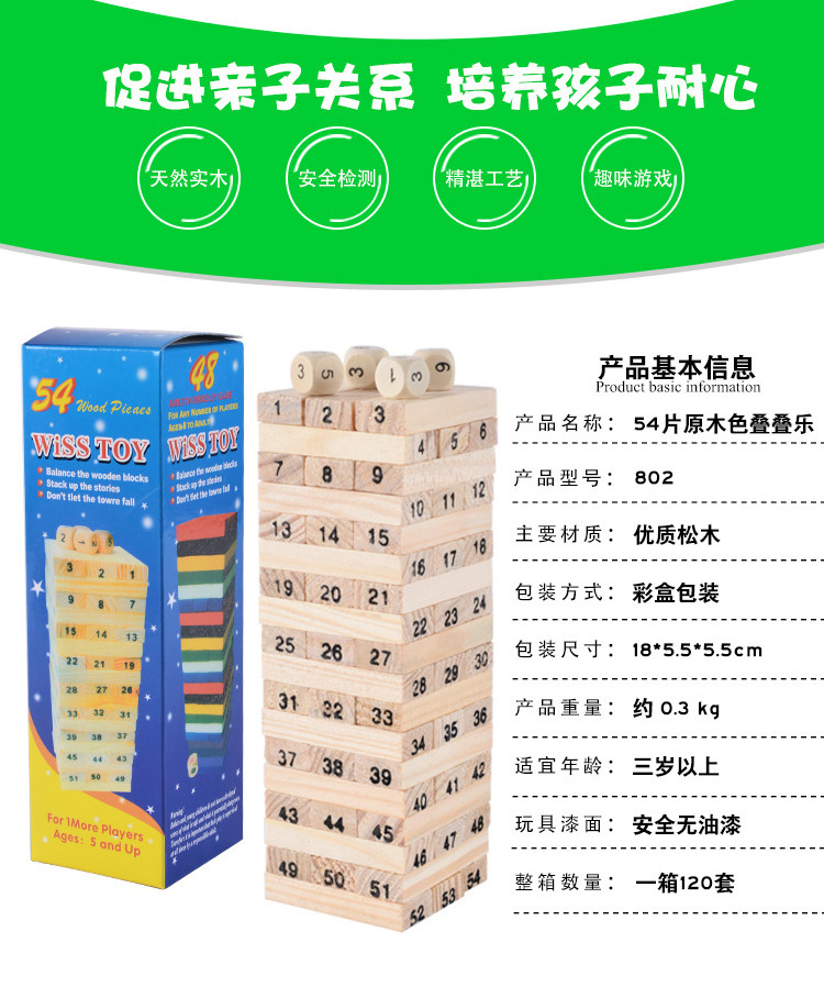 Educación temprana para niños, juguetes de madera de Jenga, bloques de construcción de madera grandes, versión para adultos, altura de apilamiento