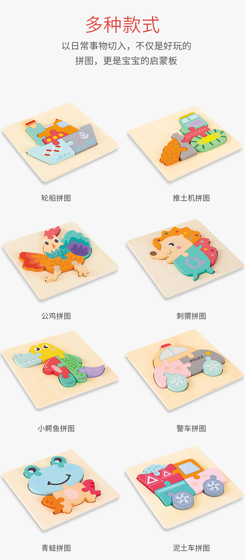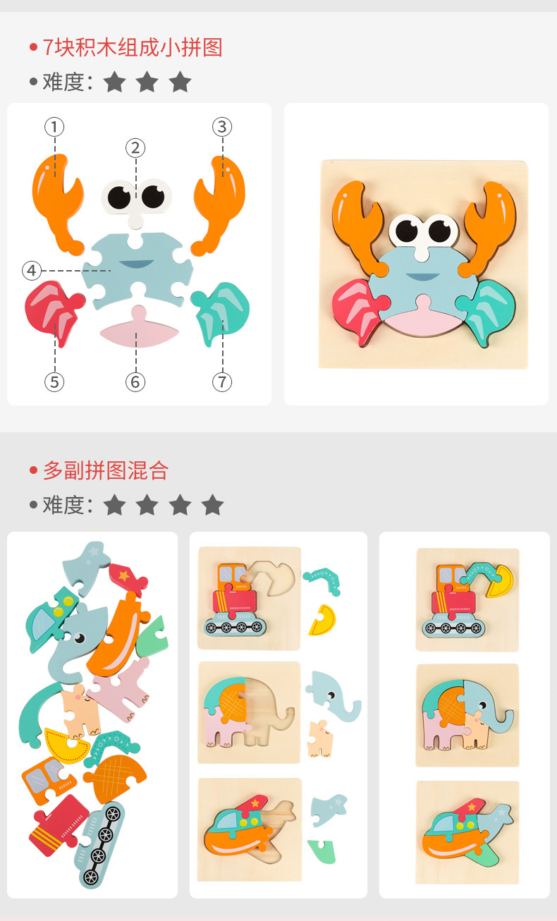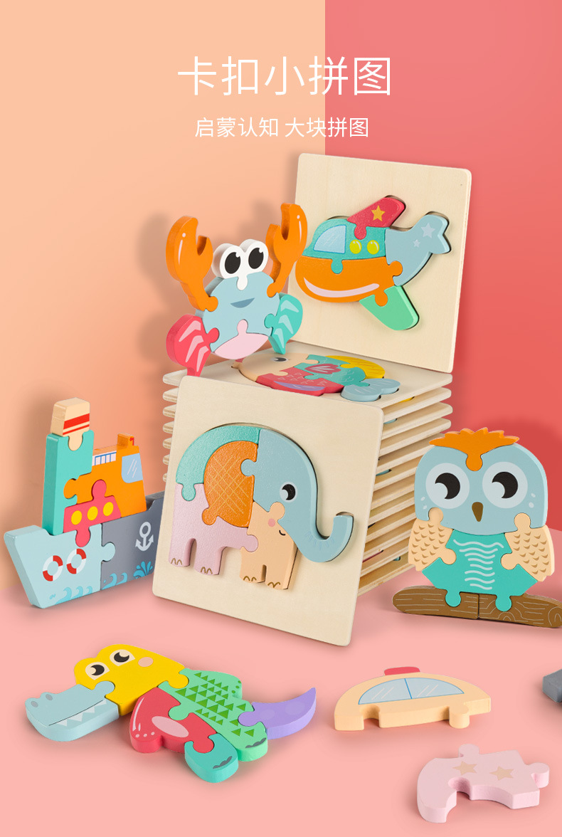 Tridimensional de madera agarrar a mano rompecabezas macaron niños de dibujos animados tráfico de animales educación temprana Ilustración juguete montado
