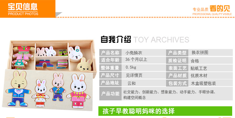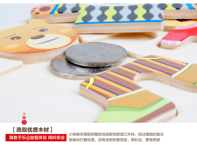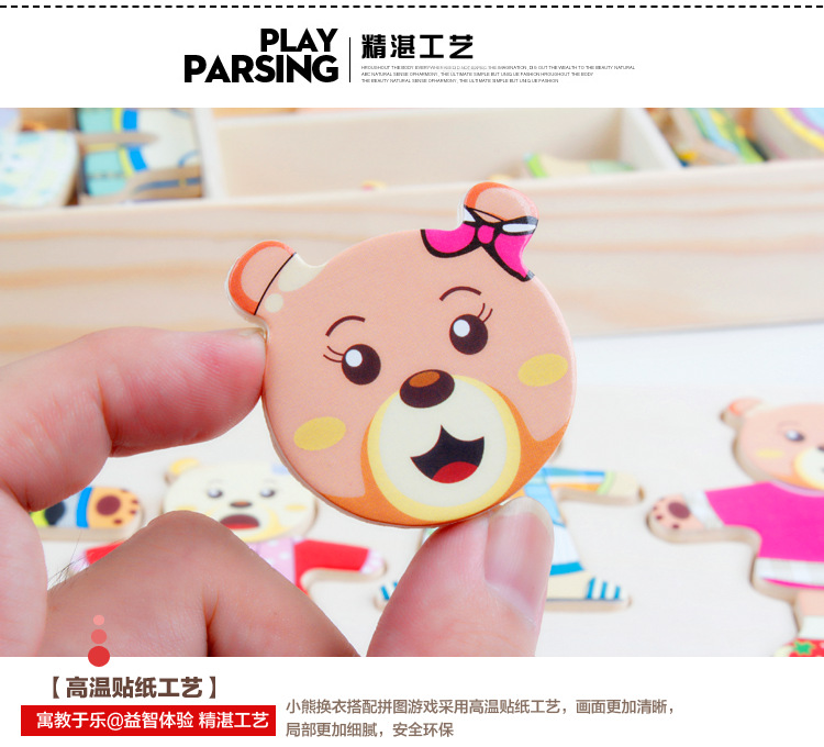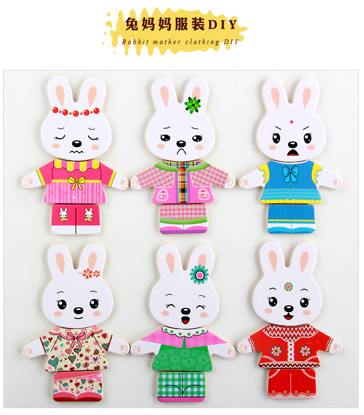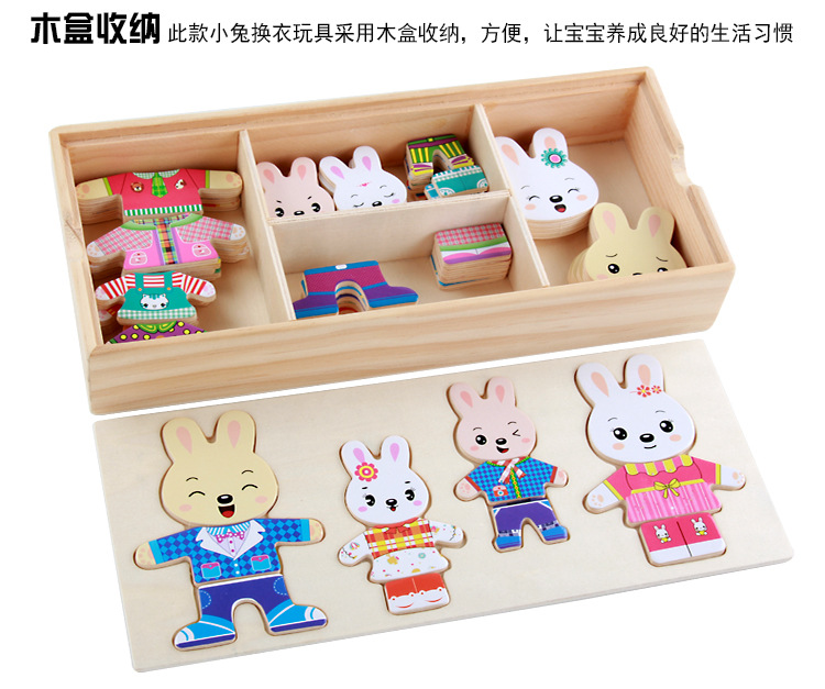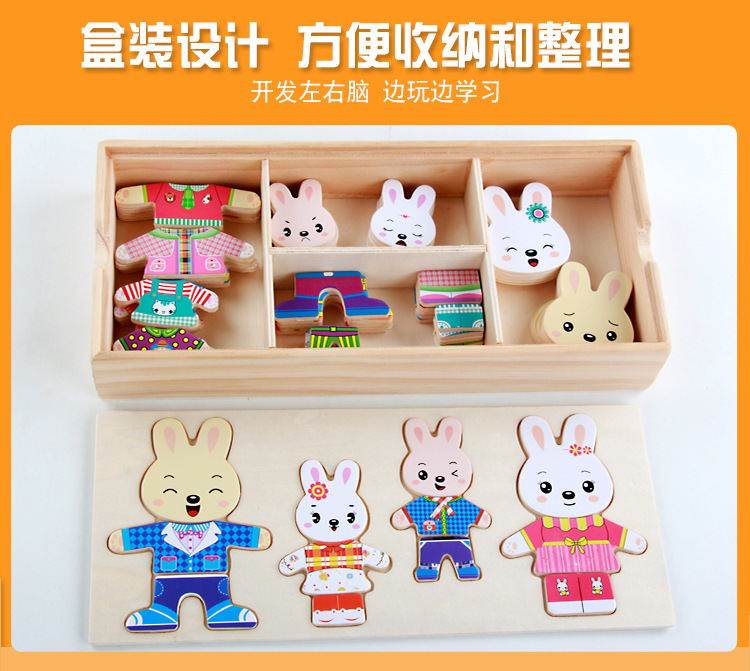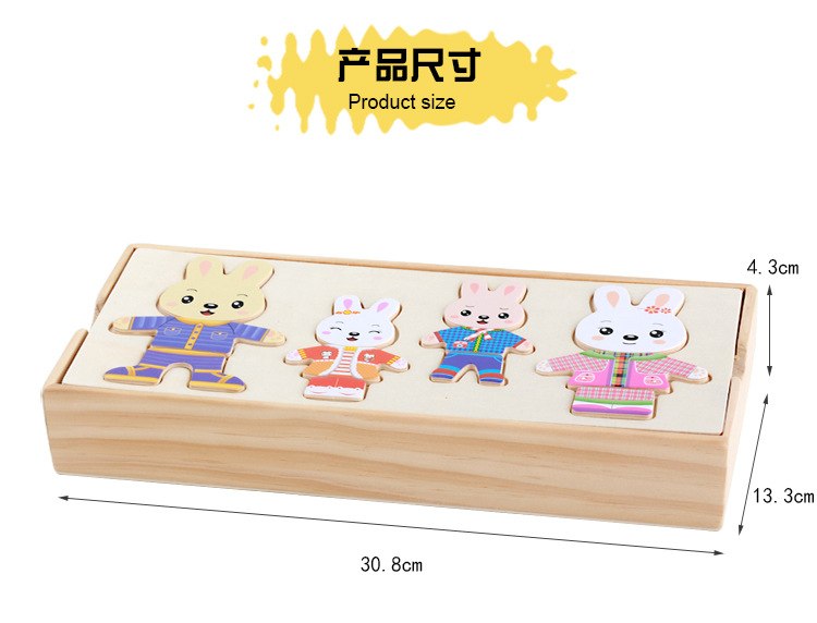 Niños de madera cuatro conejos cuatro osos de vestir rompecabezas ropa de dibujos animados de madera-cambio pequeño animal rompecabezas