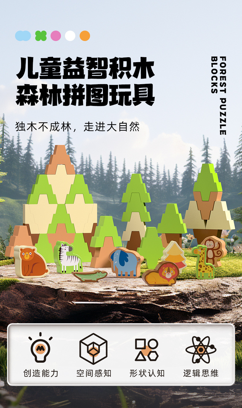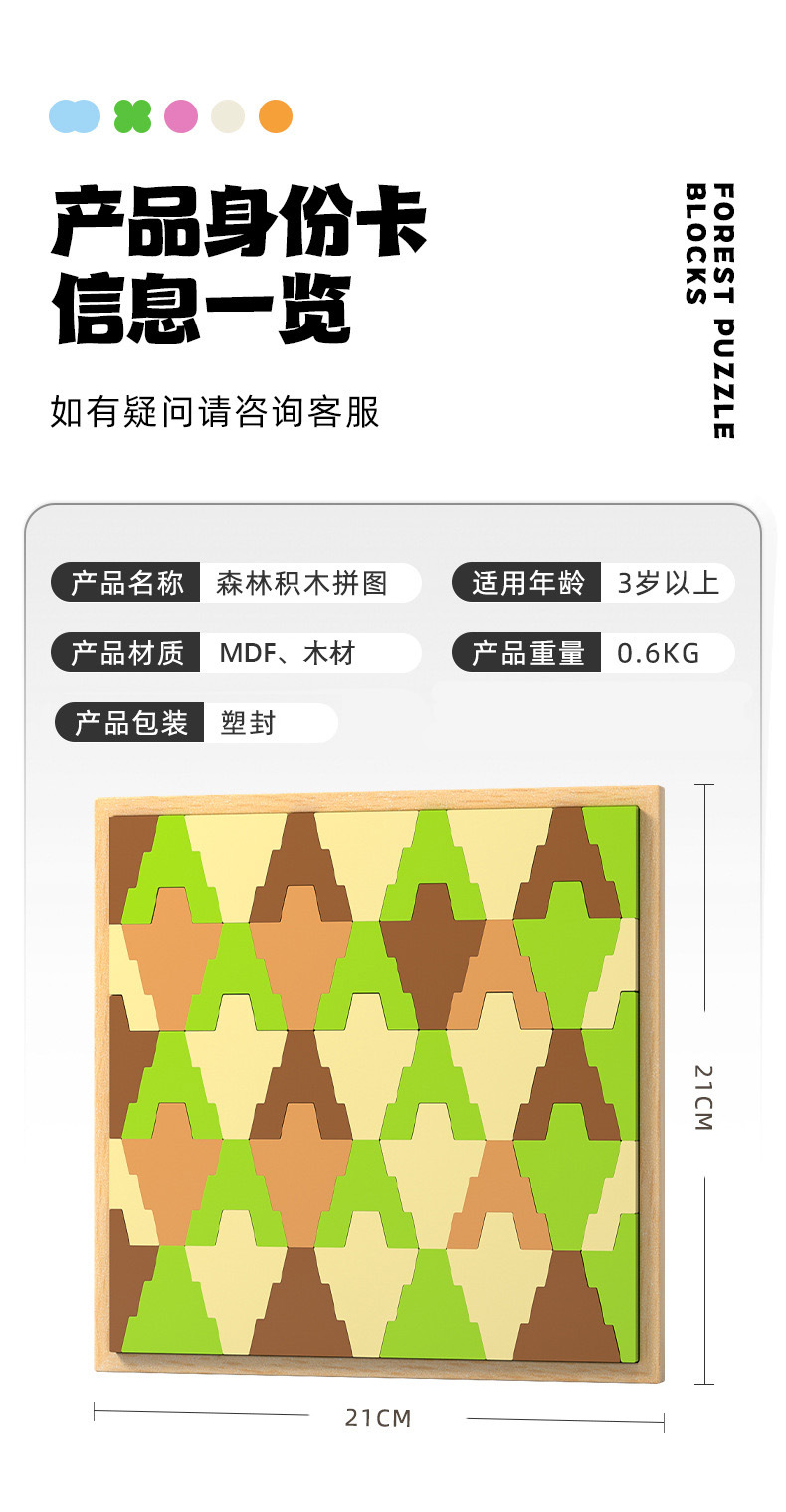 Bloques de rompecabezas para niños, juguetes de educación temprana para bebés ensamblados de partículas grandes de madera 1 1 2 años 3 niños y niñas 6 rompecabezas del bosque