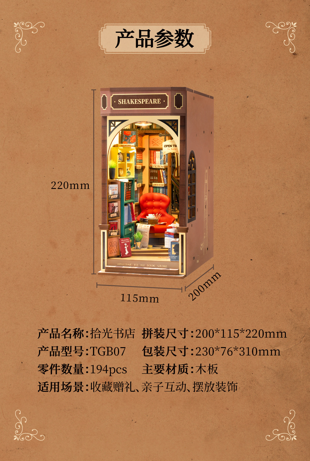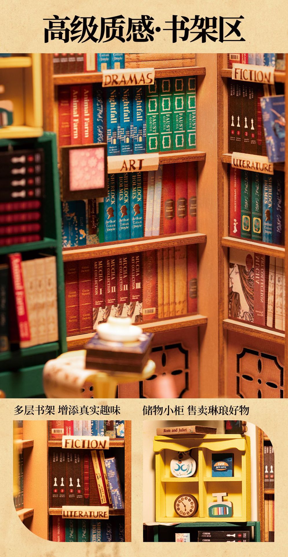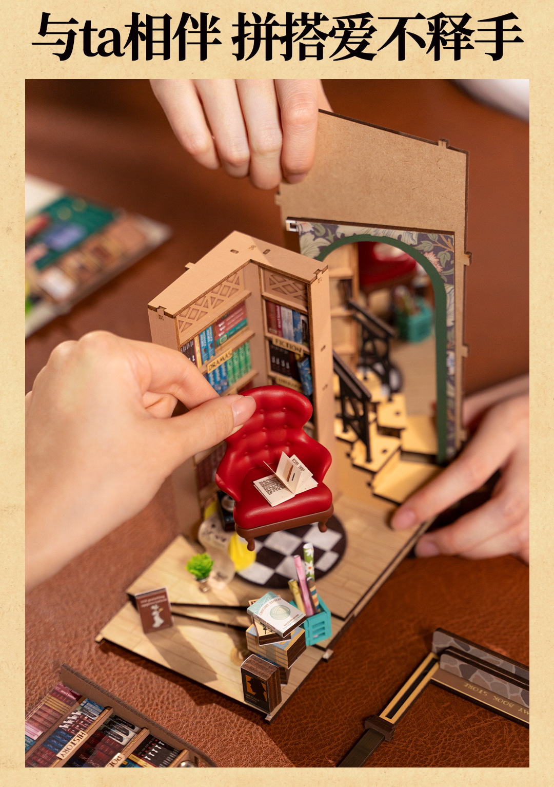 Ruolai luz picking librería libro soporte 3D rompecabezas tridimensional miniatura DIY cabaña madera ensamblada modelo casa bloques de construcción Juguetes