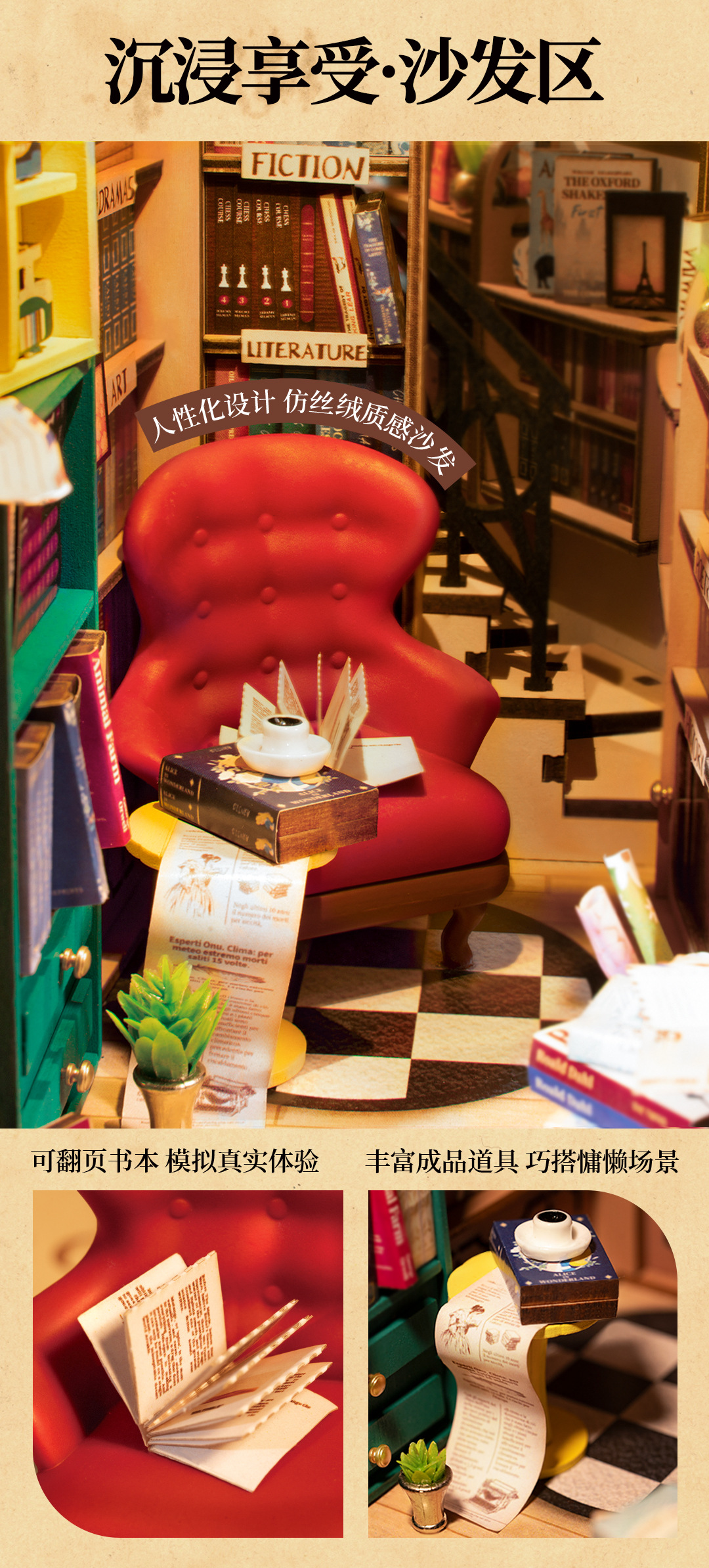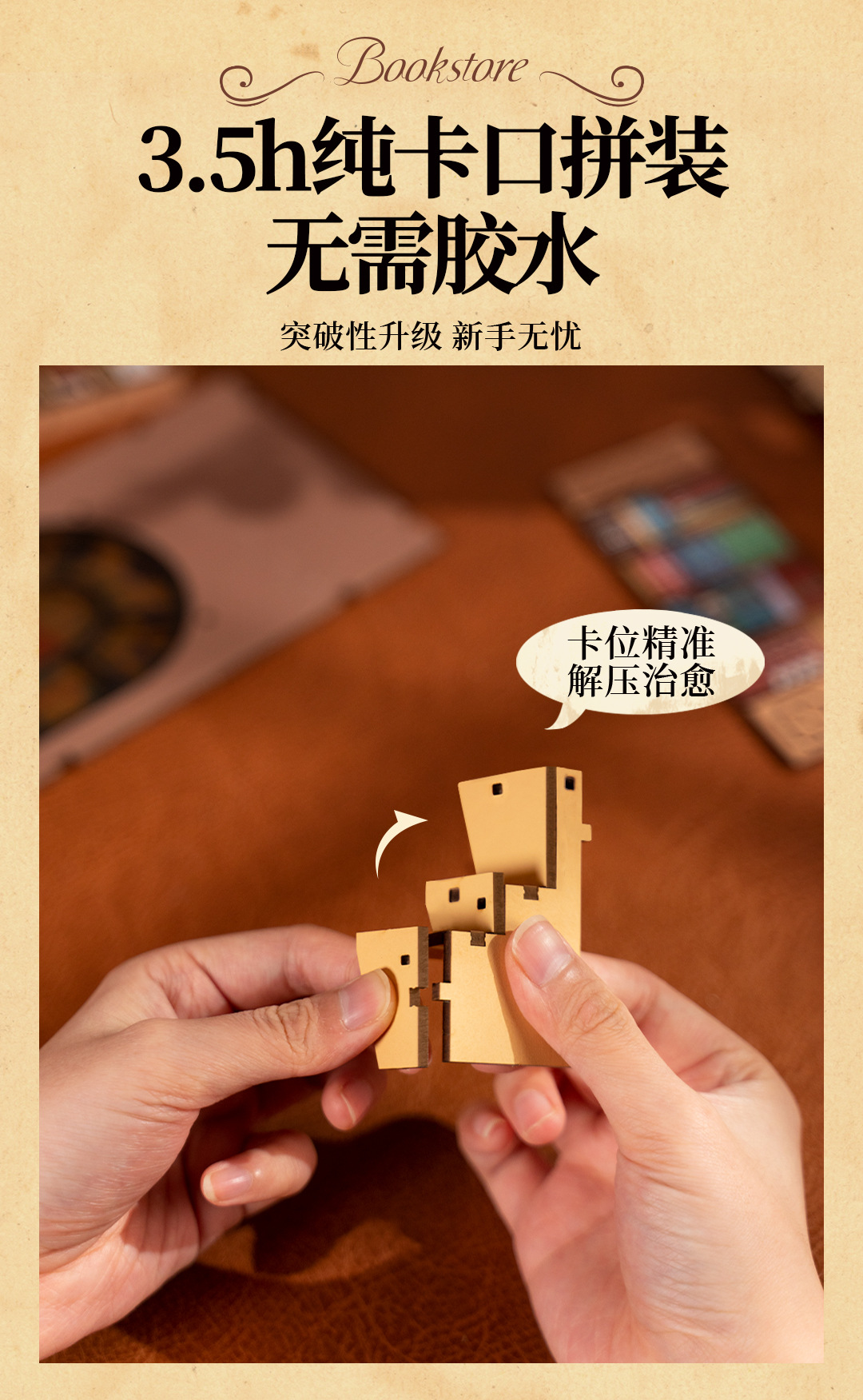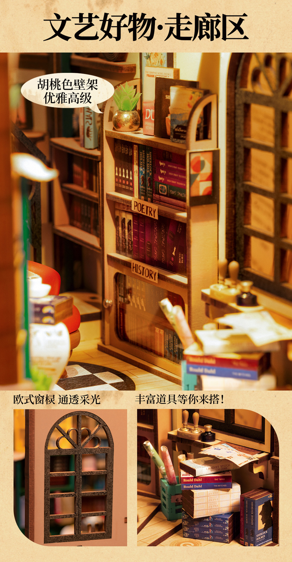 Ruolai luz picking librería libro soporte 3D rompecabezas tridimensional miniatura DIY cabaña madera ensamblada modelo casa bloques de construcción Juguetes
