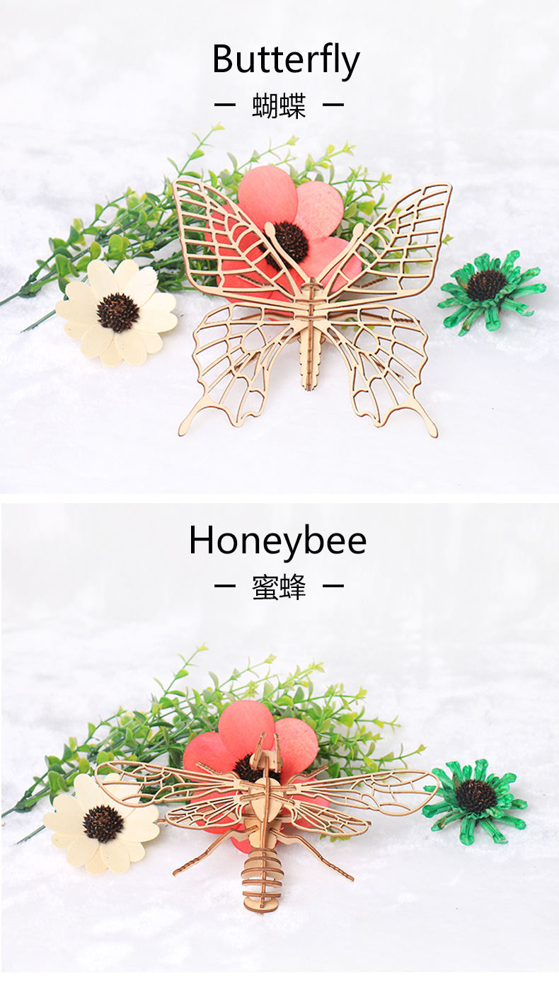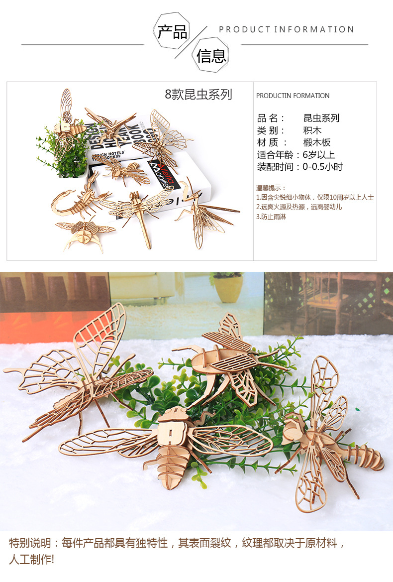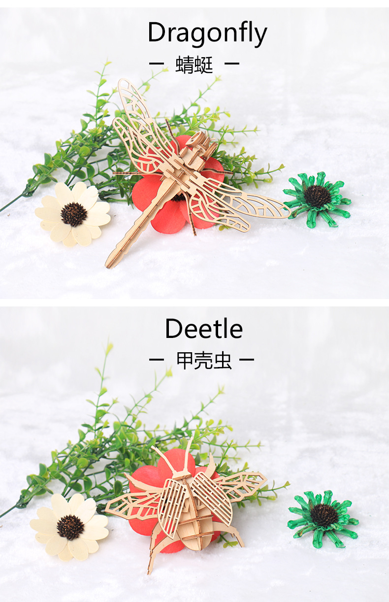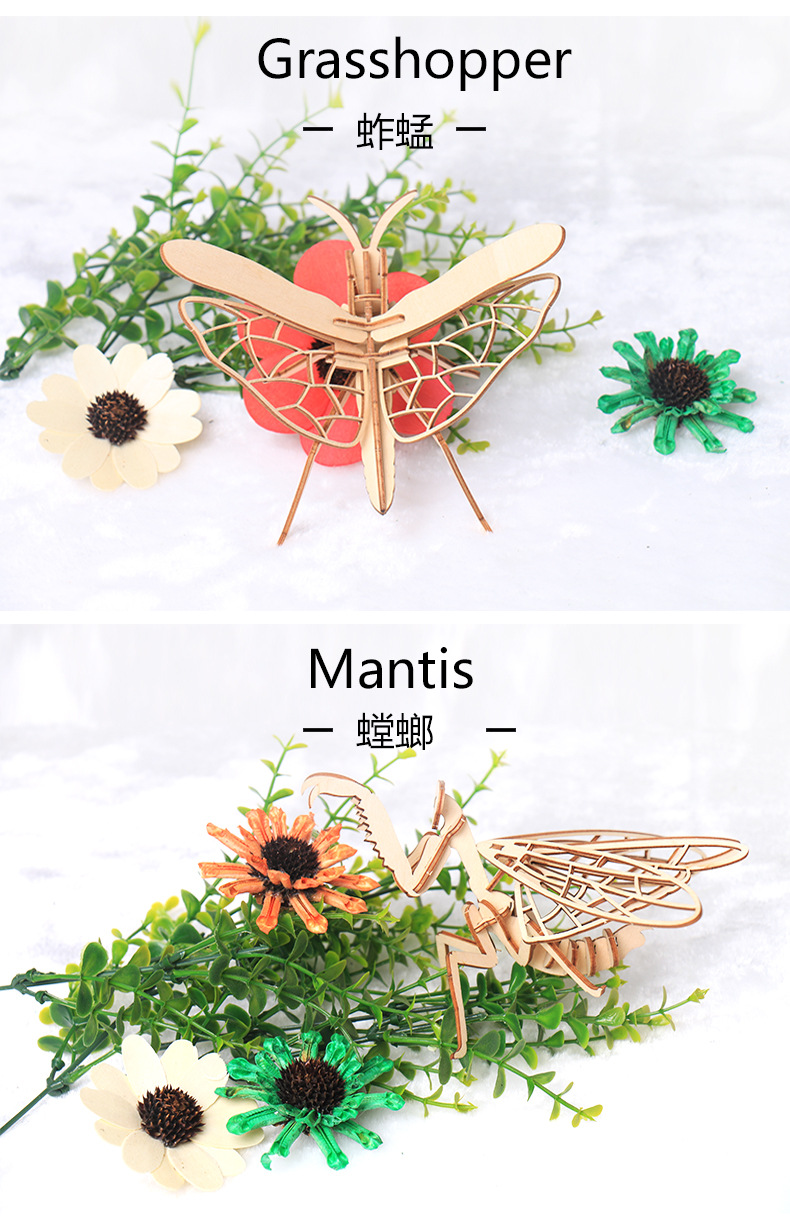 Madera múltiples insectos 3D rompecabezas de los niños juguetes educativos avanzados montaje creativo modelo