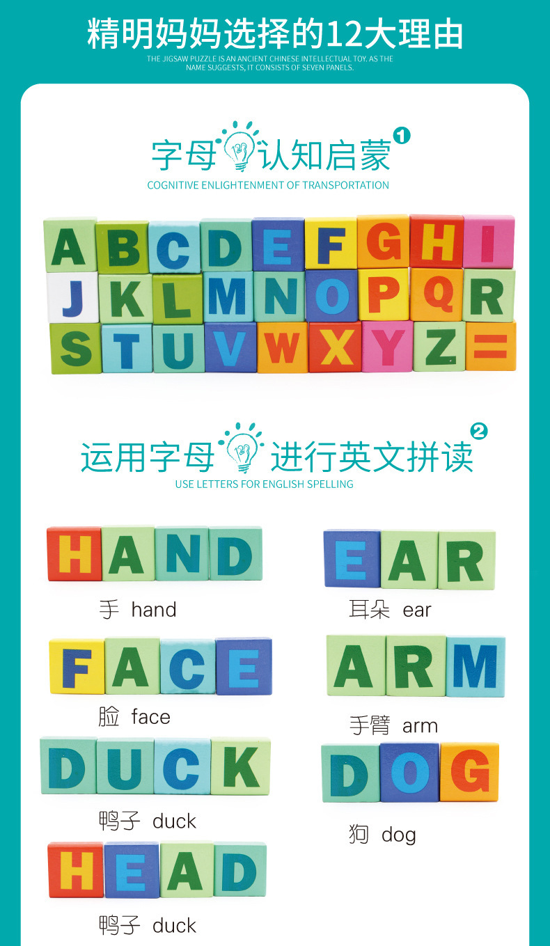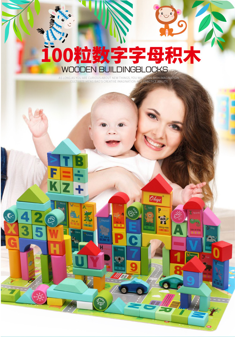 Weiweihu rompecabezas bloques de construcción cubo de arce 50 ~ 100 piezas de letras apiladas con bloques de construcción, juguetes de educación temprana para niños ecológicos