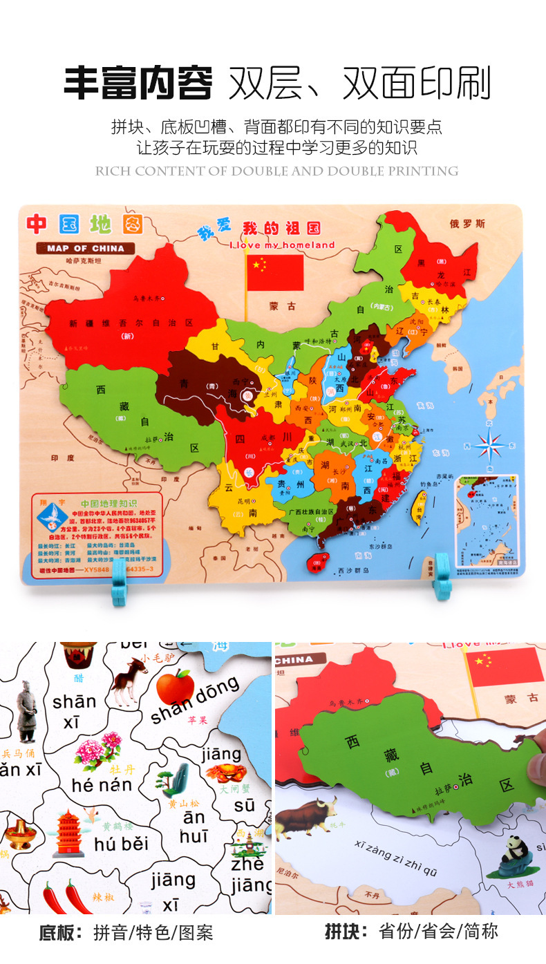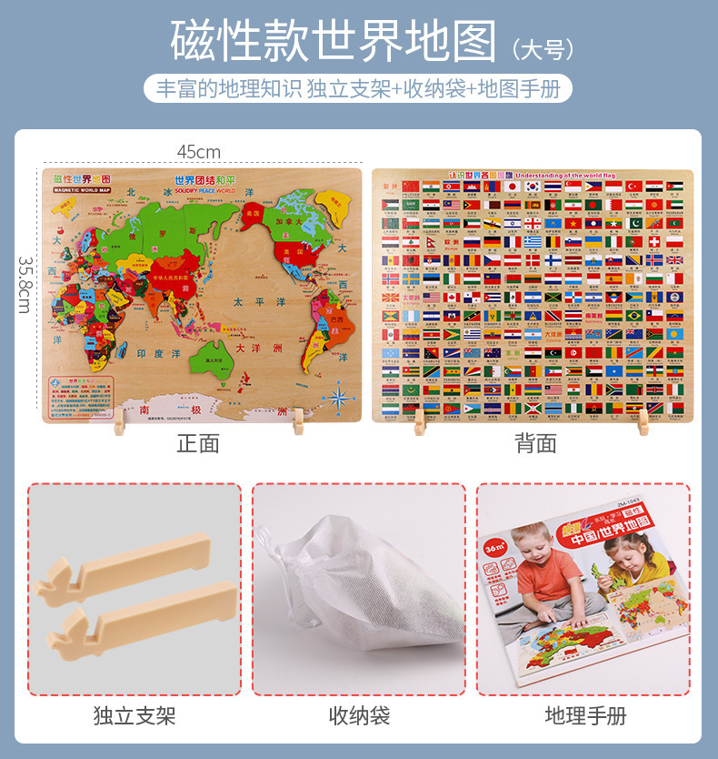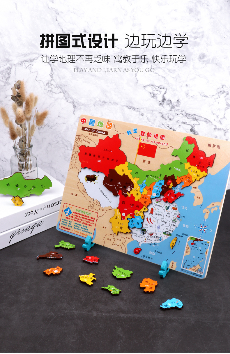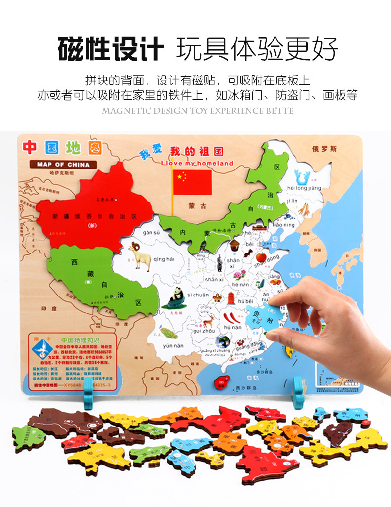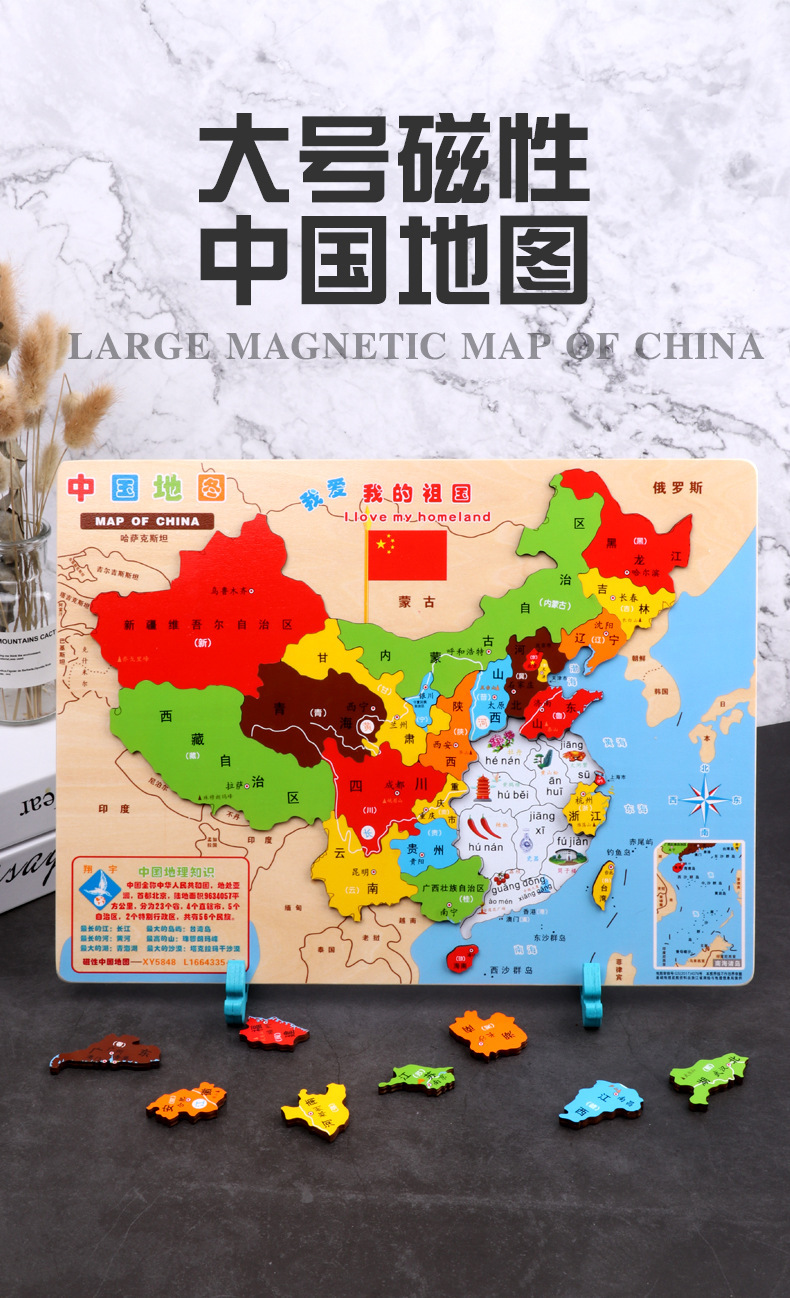 Rompecabezas de mapa chino magnético de madera gran mundo engrosado tridimensional educación temprana geografía educativa de los niños juguetes cognitivos