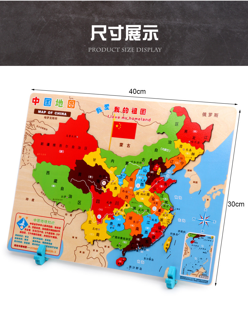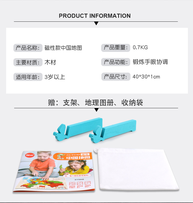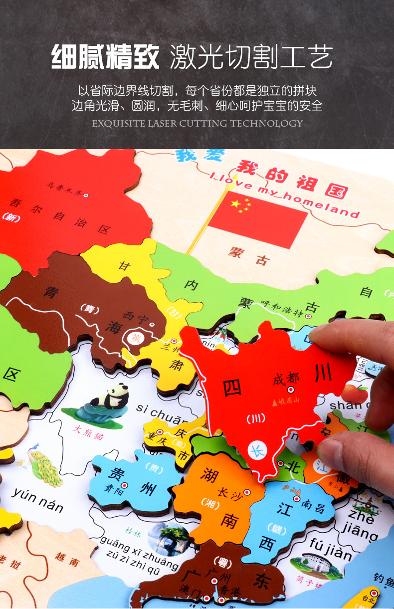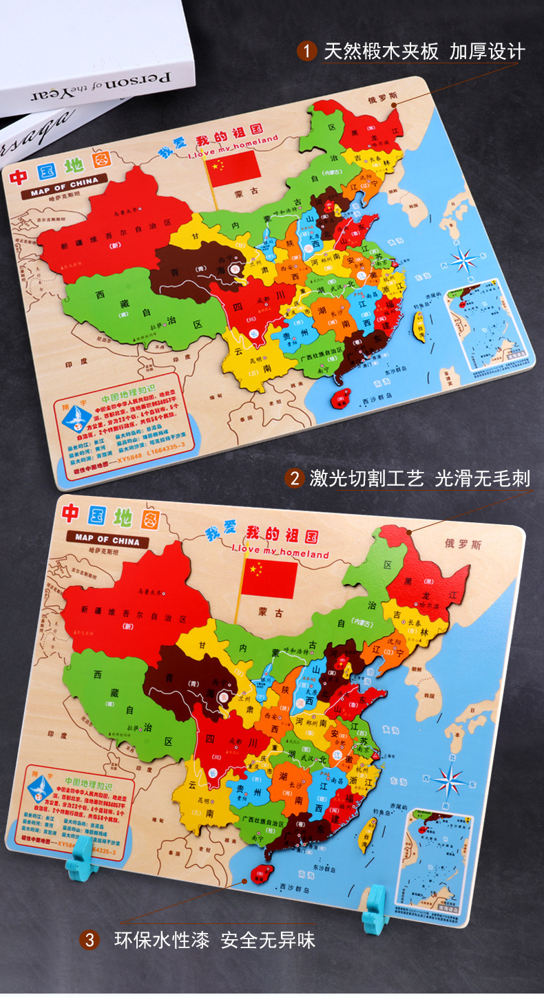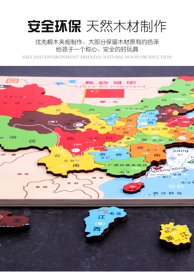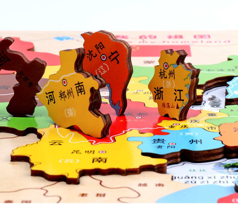 Rompecabezas de mapa chino magnético de madera gran mundo engrosado tridimensional educación temprana geografía educativa de los niños juguetes cognitivos