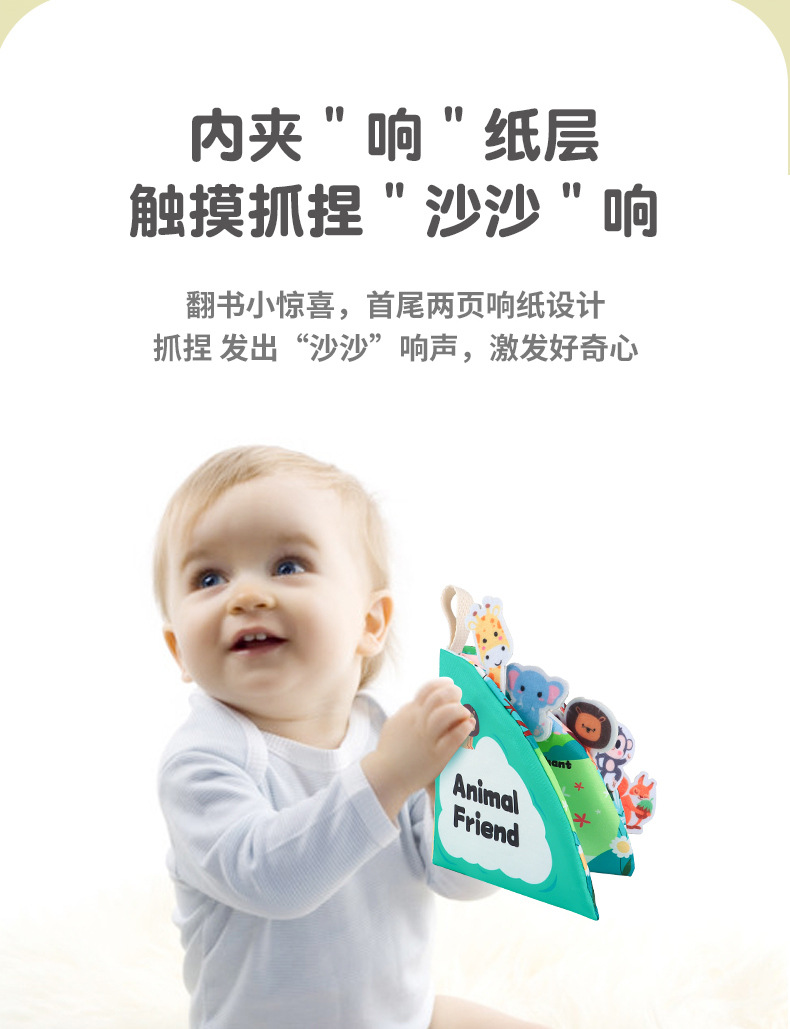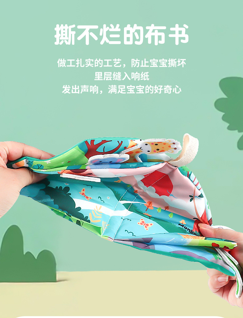 Tiktok libro de tela para bebés educación temprana 0-1 años de edad bebé sonando papel rasgado libro puede morder iluminación 3-6 meses juguetes educativos