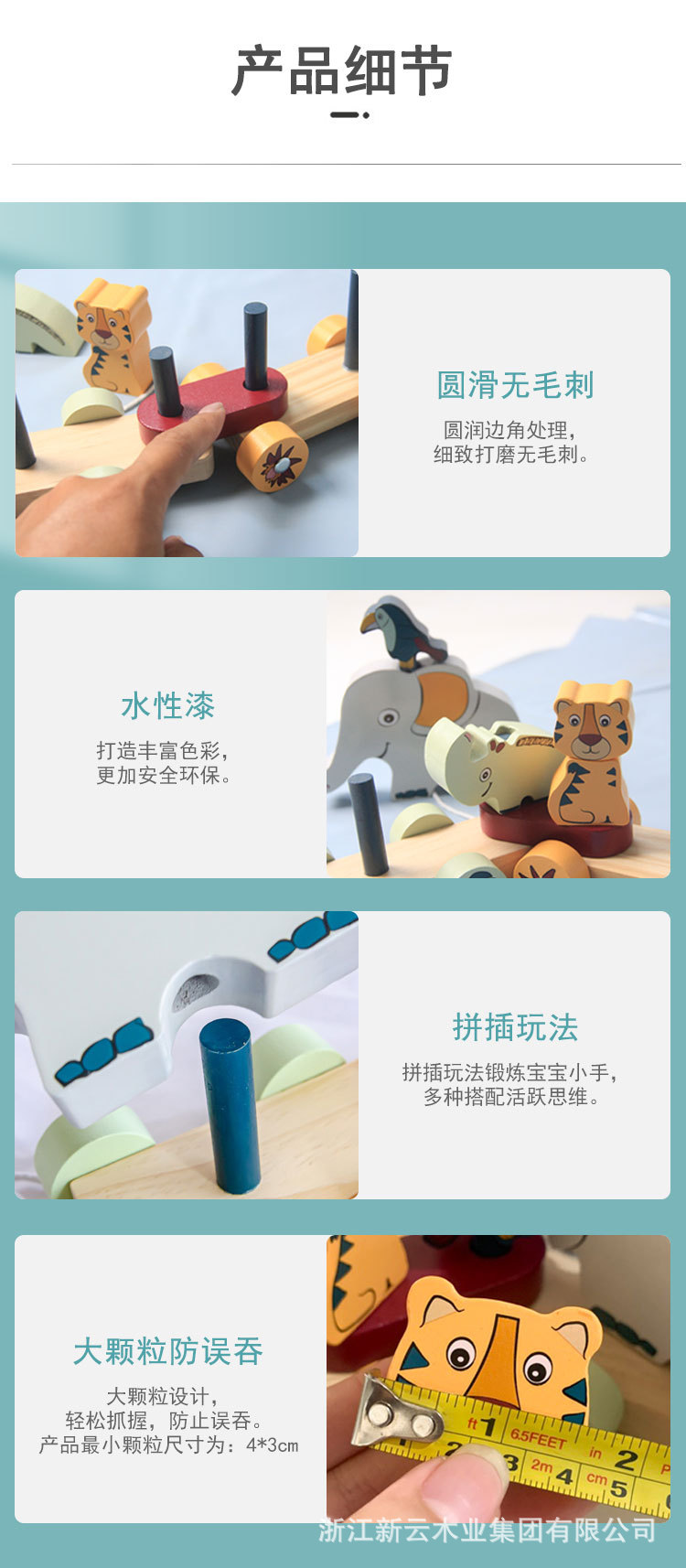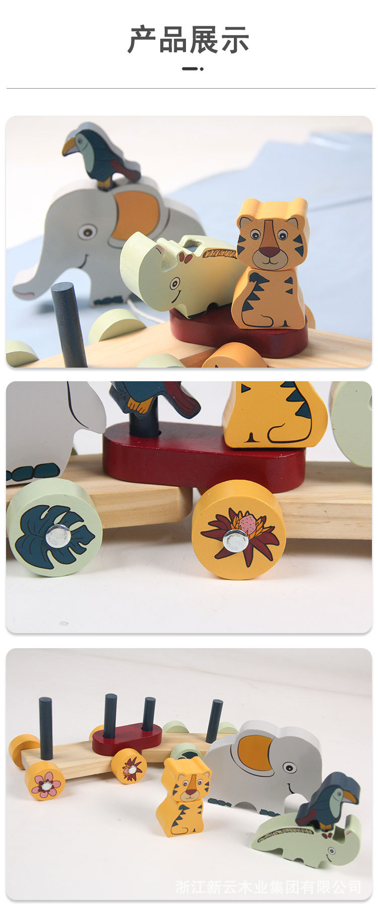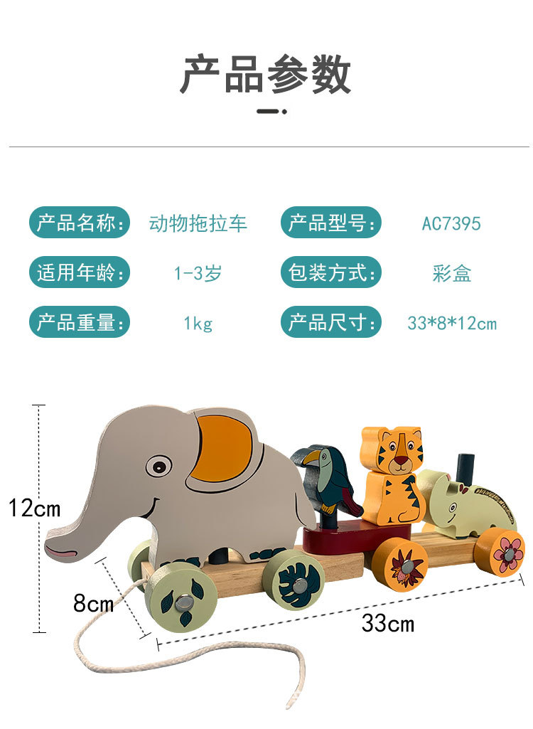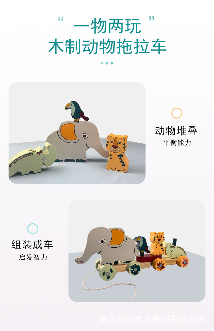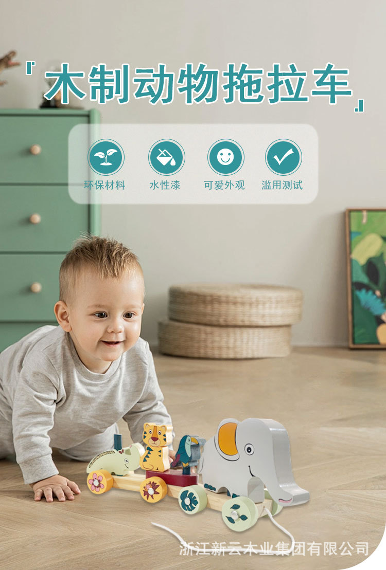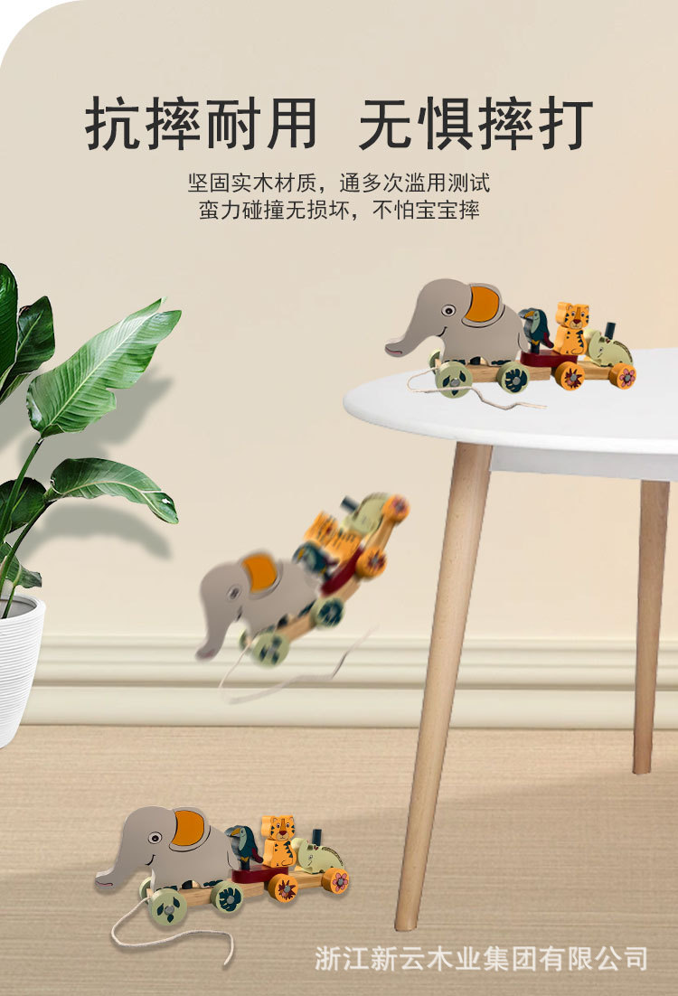 Los niños de madera dibujos animados zoológico educación temprana educativa iluminación elefante bebé cordón coche juguete