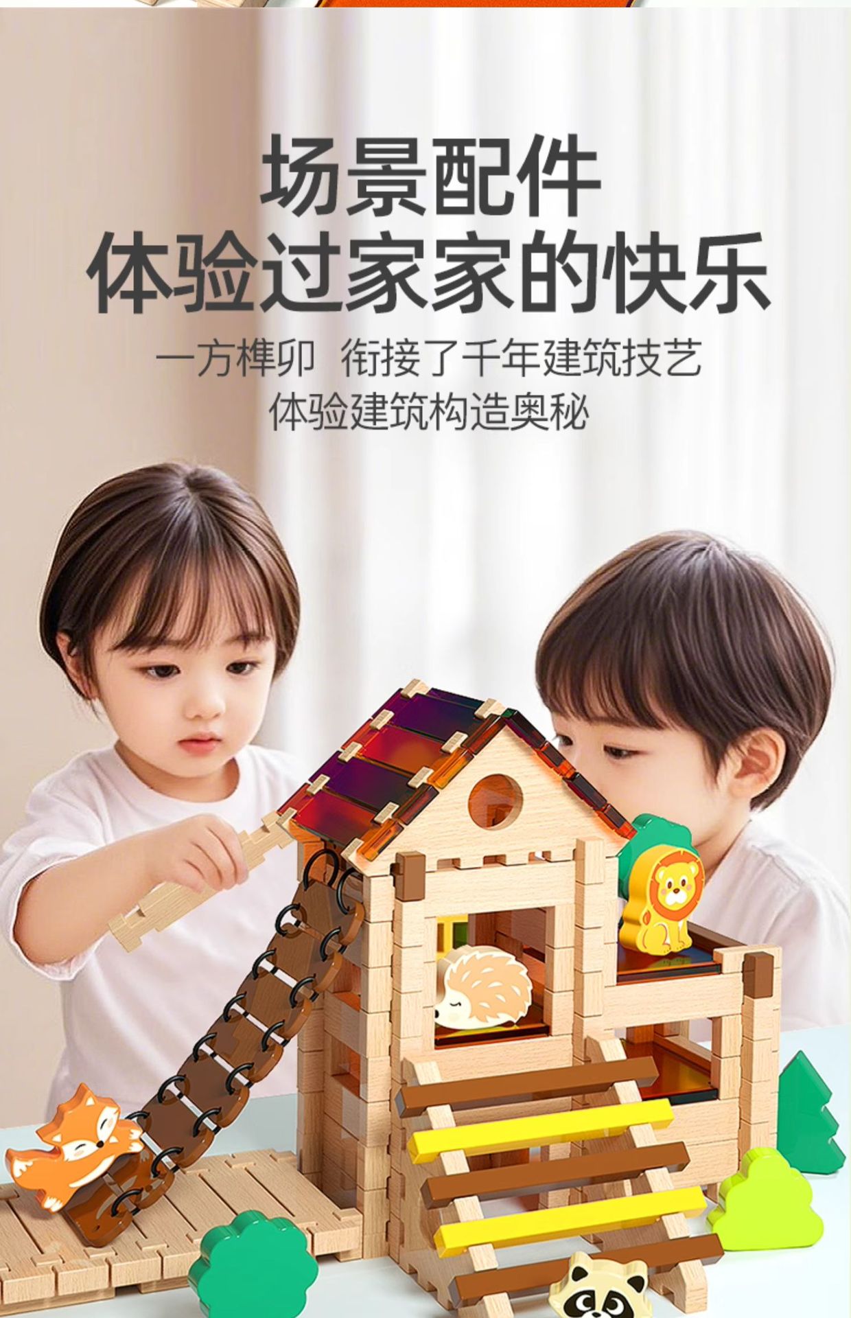 Bloques de construcción de espiga y espiga de madera Luban para construir una casa de arquitecto