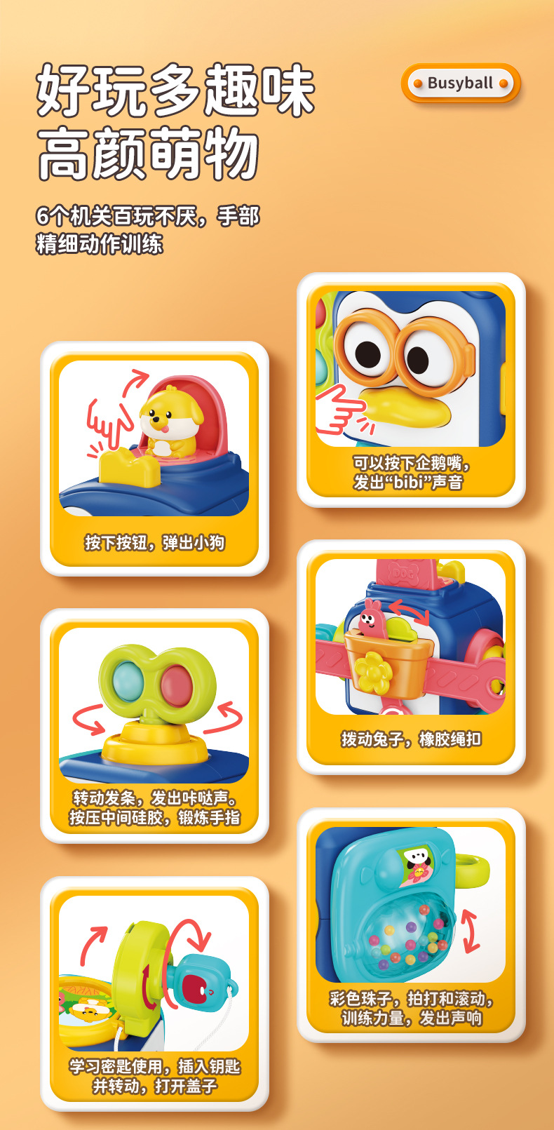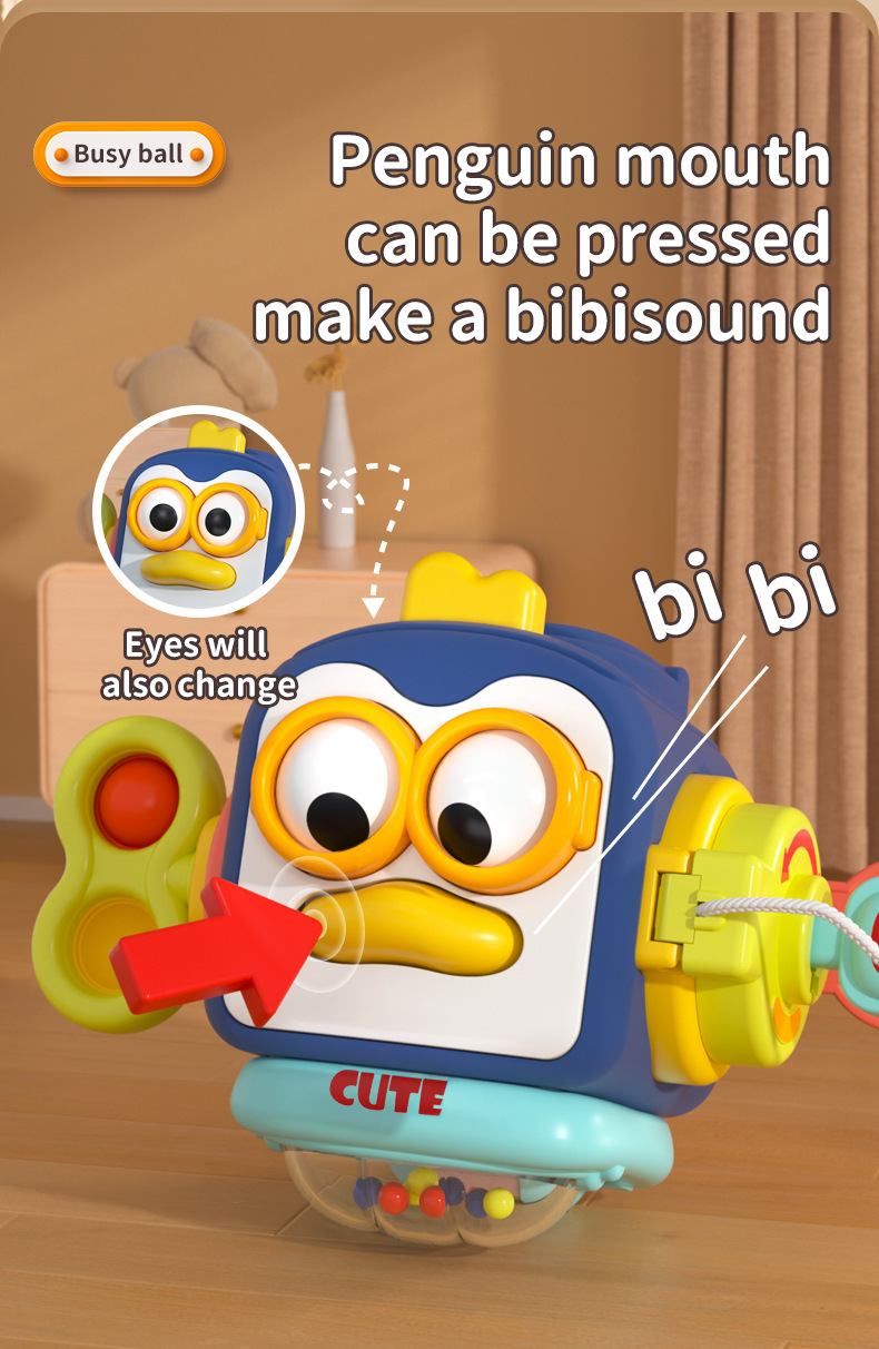 Transfronterizo niños Montessori Educación Temprana Infantil pingüino ocupado bola bebé mano bola educativa sensorial hexaedro juguete