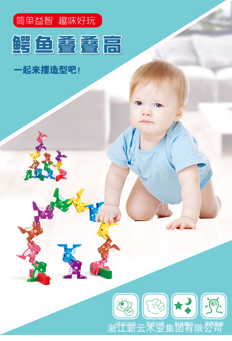 De los niños de madera bebé divertido cocodrilo Jenga inteligencia equilibrio Jenga padres e hijos de escritorio juguetes educativos