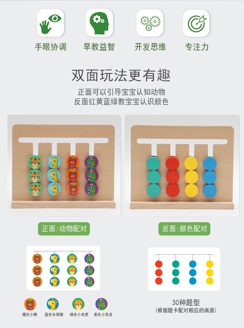 De cuatro colores de doble cara de Ajedrez de 3 a 6 años de edad, Montessori Educación Temprana juego de rompecabezas de pensamiento lógico entrenamiento juguetes de entrenamiento