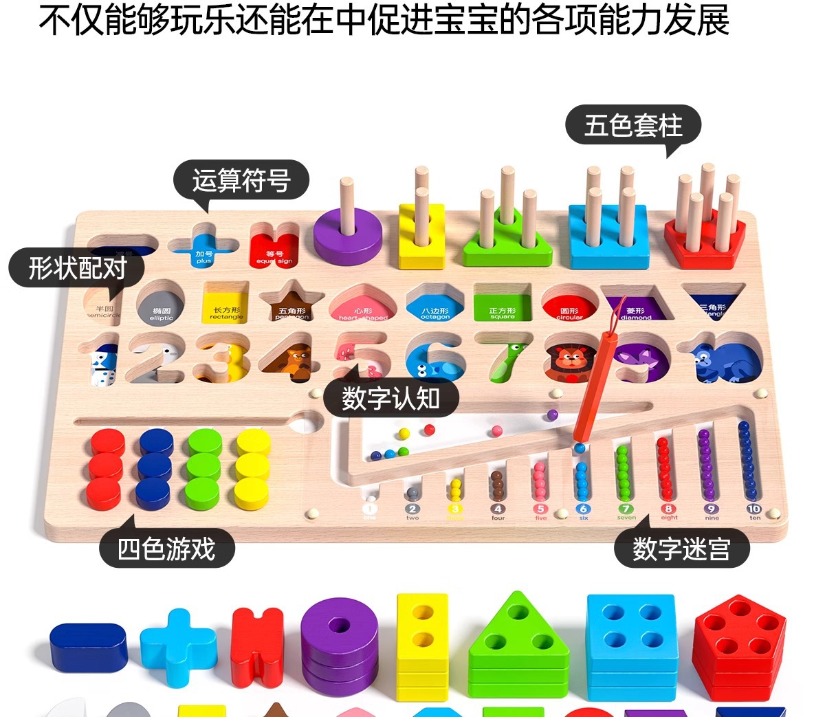 Juguetes de madera para bebés, rompecabezas de educación temprana, laberinto, reconocimiento de números, forma de coincidencia de color, bloques de construcción multifuncionales