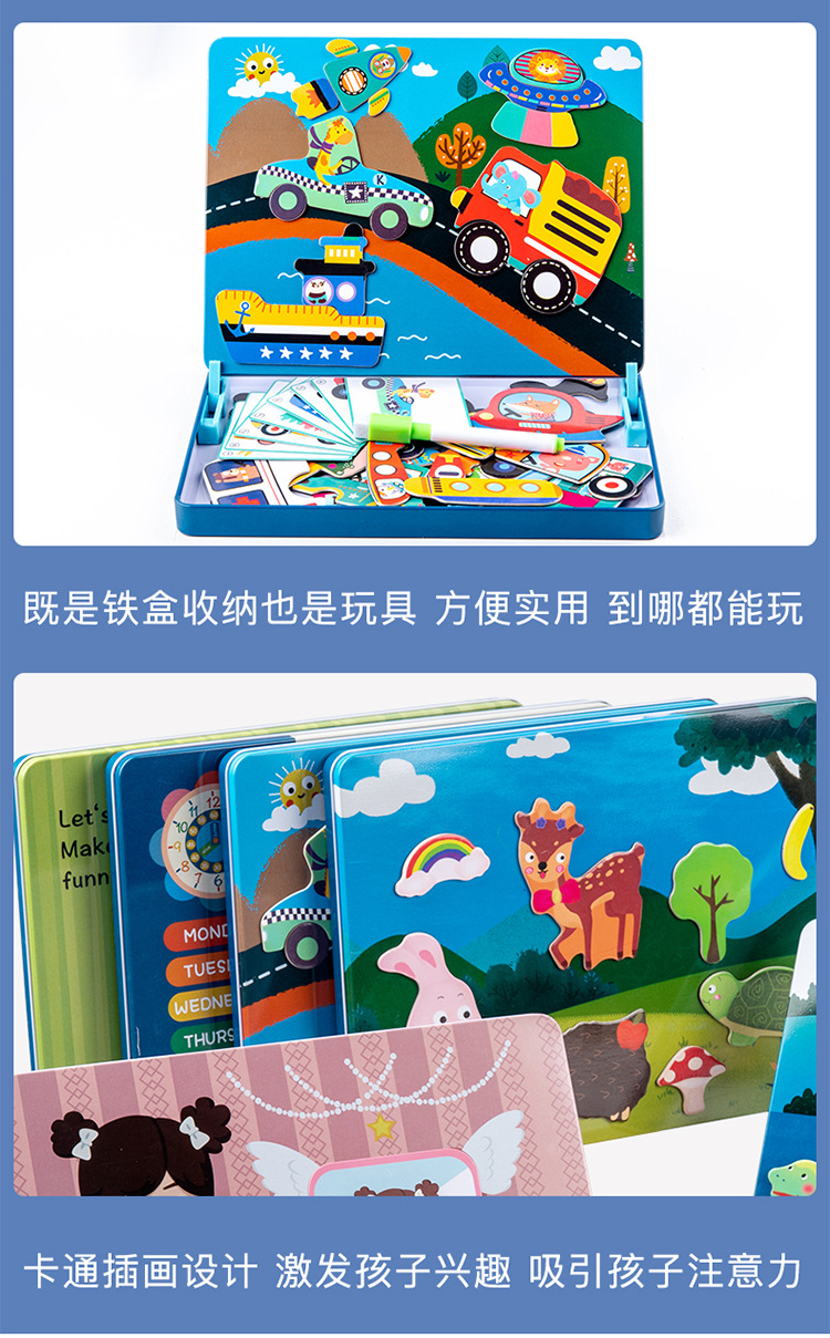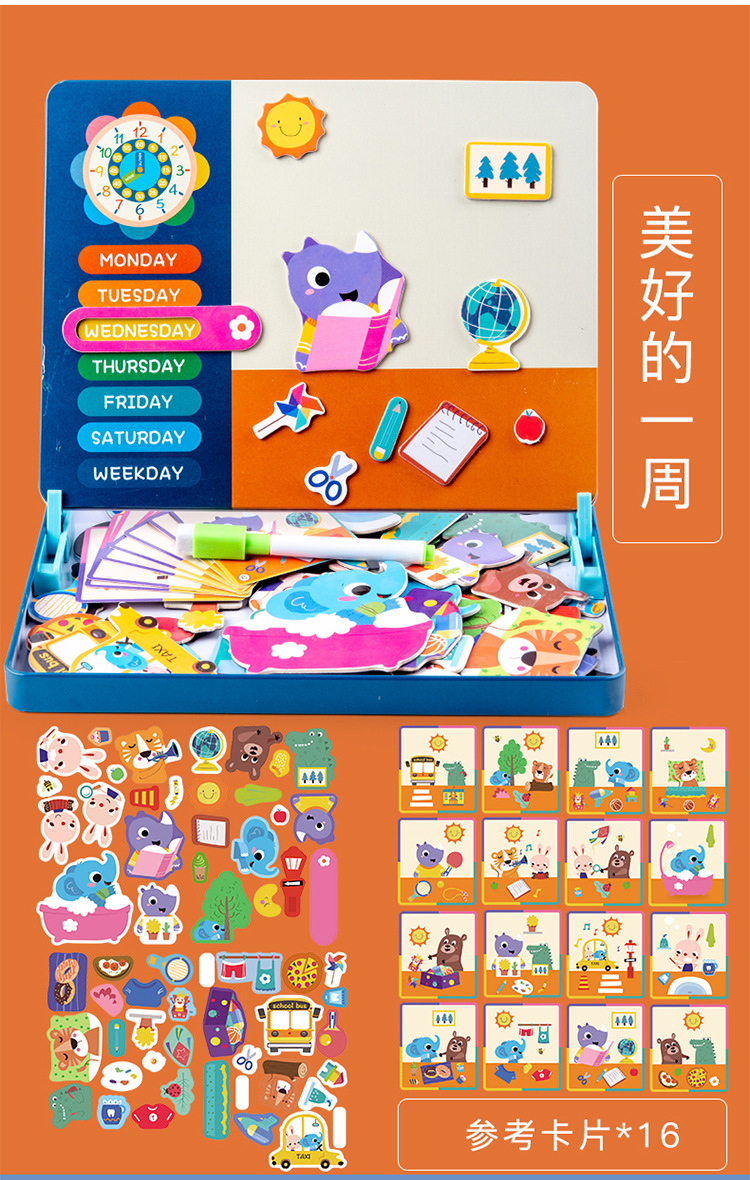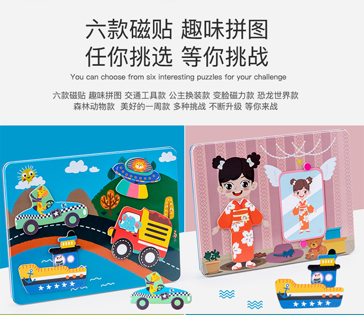 Rompecabezas magnético educativo para niños Ilustración magnética del bebé de los niños Educación temprana Rompecabezas de caja de hierro magnético de madera borrable