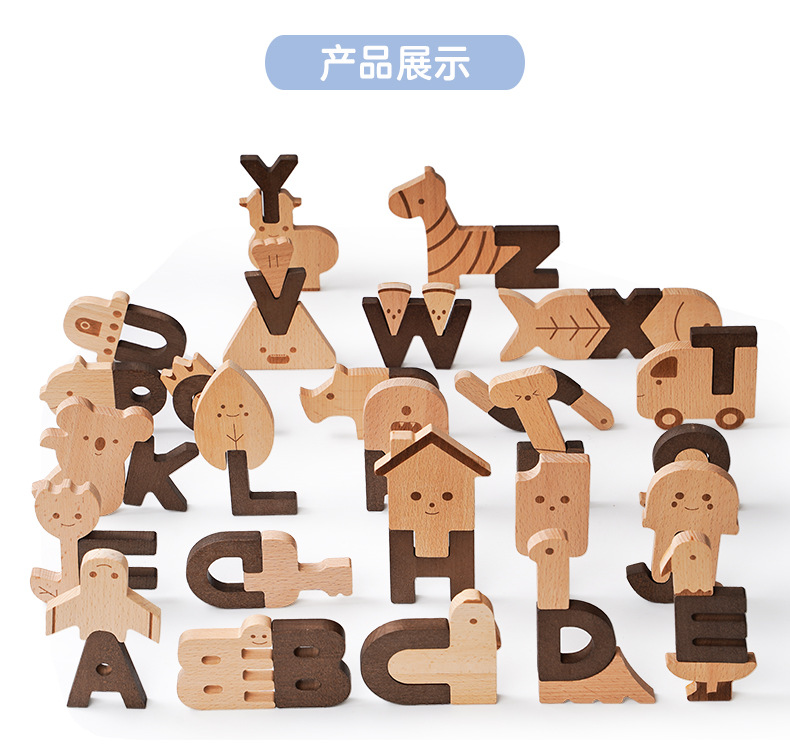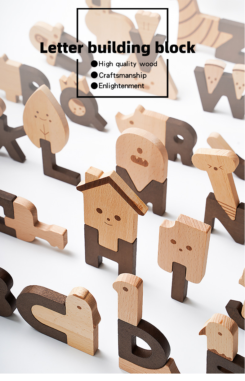 Aprendizaje de letras en inglés, rompecabezas para bebés, bloques de construcción, pinyin, juguetes educativos de madera de Mongolia