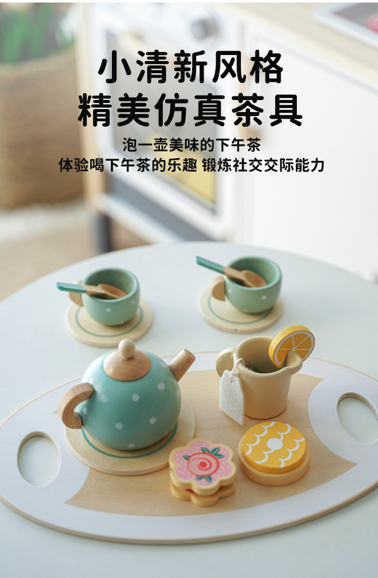Juegos de la tarde para niños, té de la tarde, pasteles de postre, juguetes de simulación de educación temprana, tetera de madera, taza, juego de té