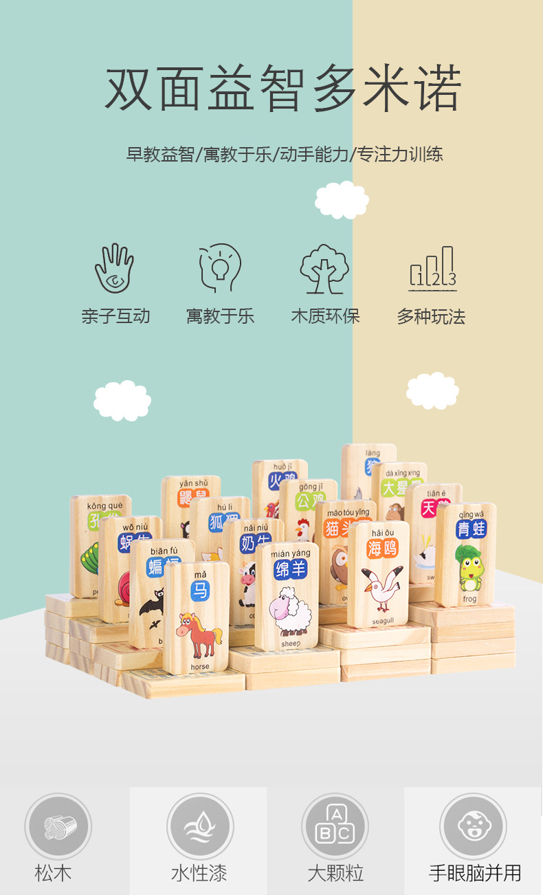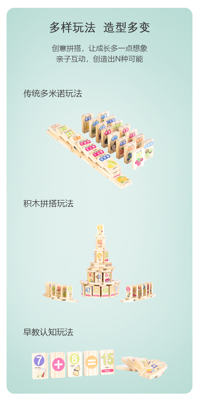 Bloques de construcción de dominó de madera personalizados juguetes intelectuales beneficiosos para niños 3-4-5-6 años de edad, 100 granos para niños y niñas