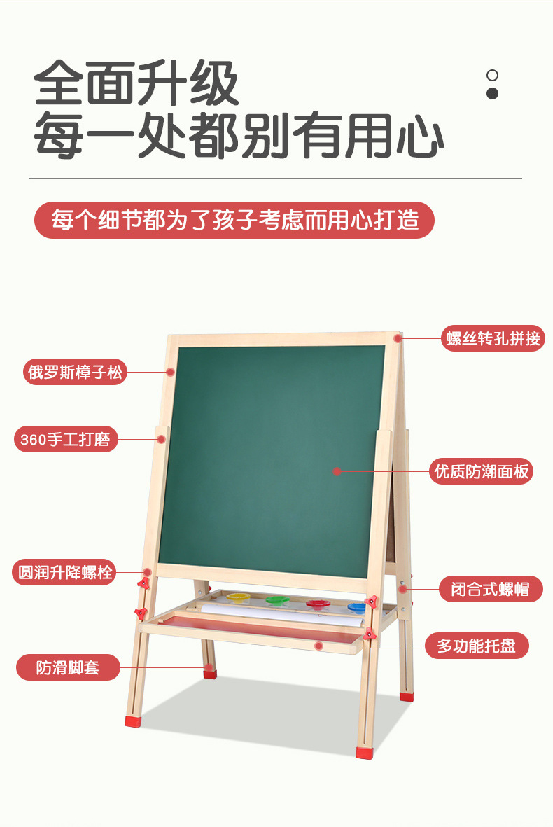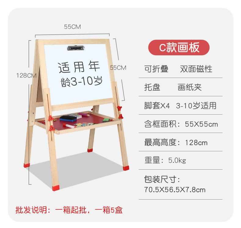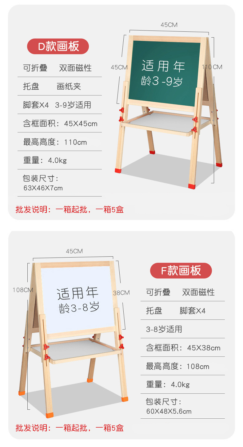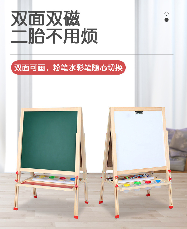 Una caja de color de dos pasos tablero de dibujo para niños de madera maciza soporte de caballete ajustable de doble cara magnético de madera pizarra pequeña en stock