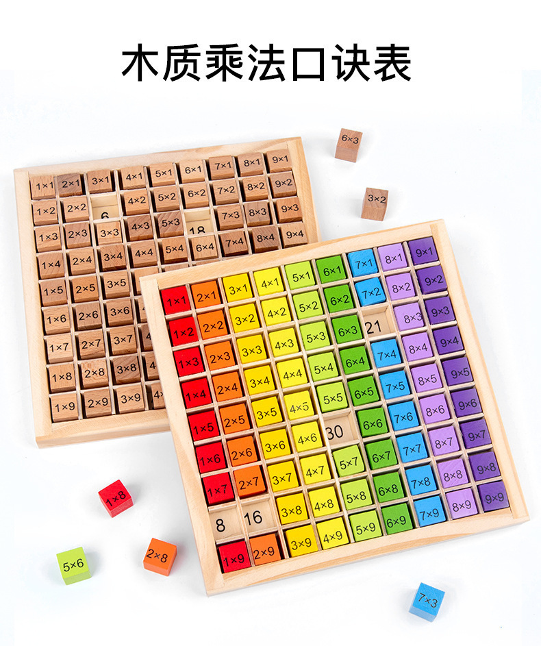 Tablero de fórmula de multiplicación Educación temprana para niños Tablero de cientos de números Cognición digital Tabla de multiplicación de escuela primaria Tablero de aprendizaje de color de madera de un solo lado