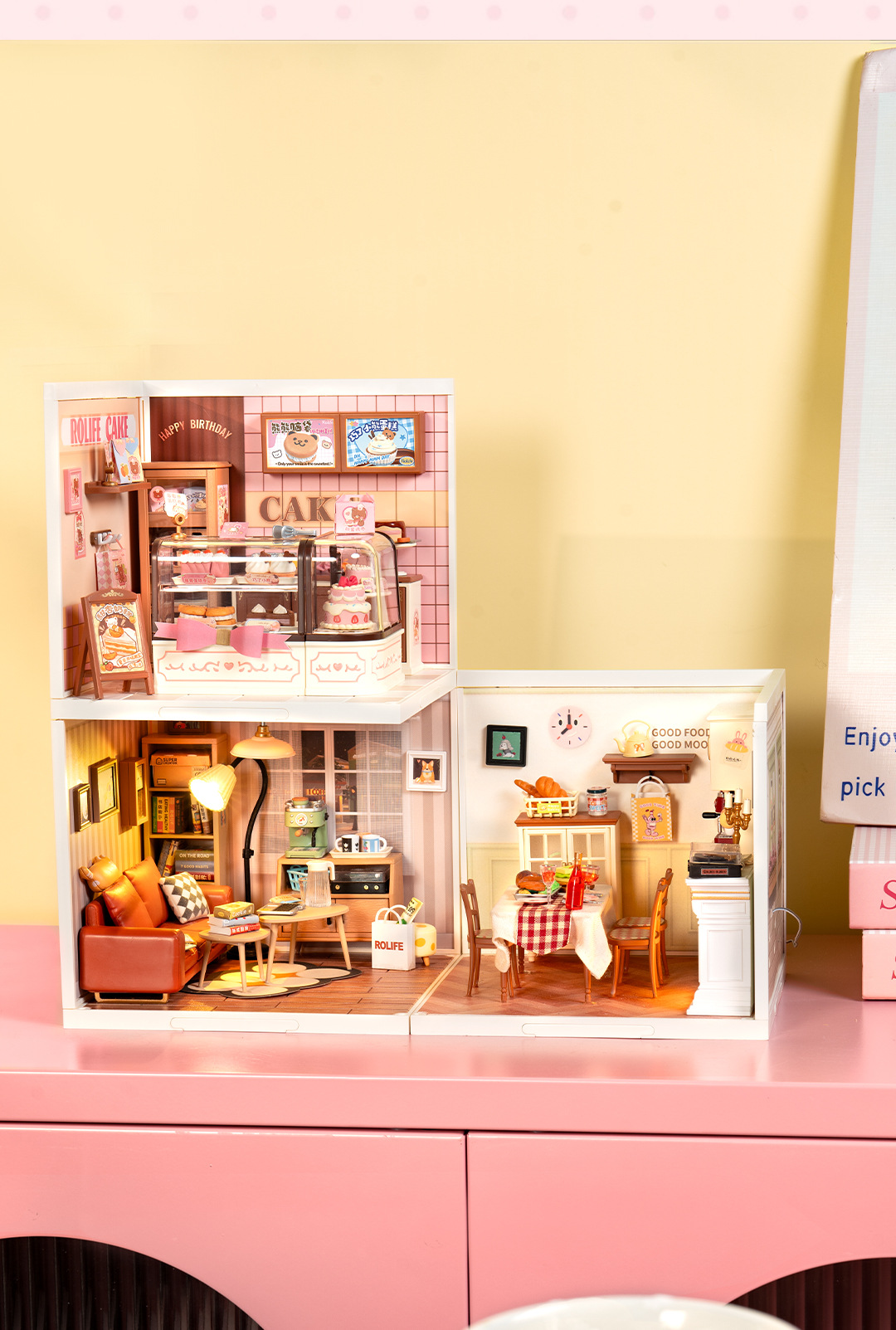 [Regalo de juguete de bricolaje] Ruo Lai Super World Bloques de rompecabezas ensamblados Modelo de juguete Tienda de pasteles Cabaña de bricolaje