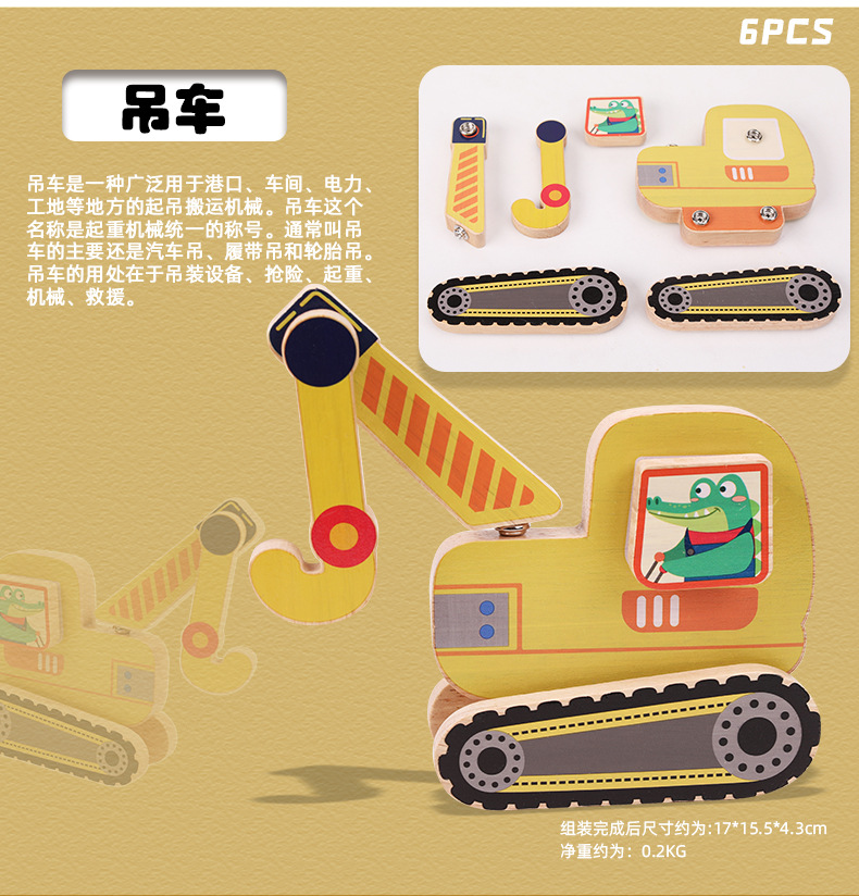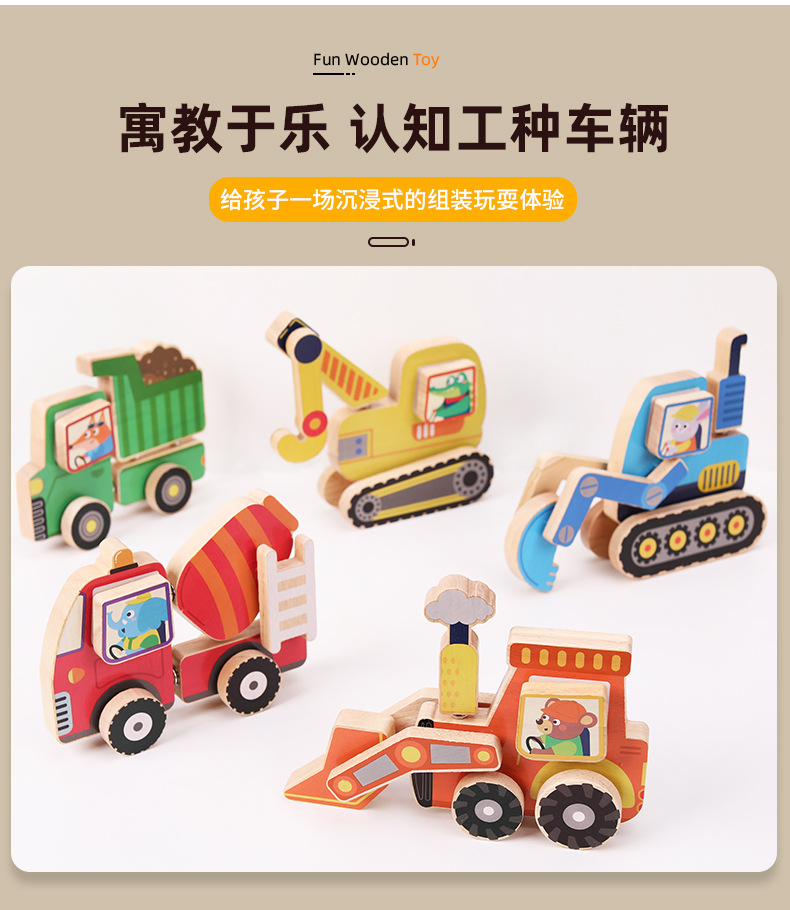 Puzzles para niños de jardín de infantes, iluminación, educación temprana, dibujos animados cognitivos, rompecabezas de autos, tablero de agarre cognitivo, rompecabezas tridimensional de madera