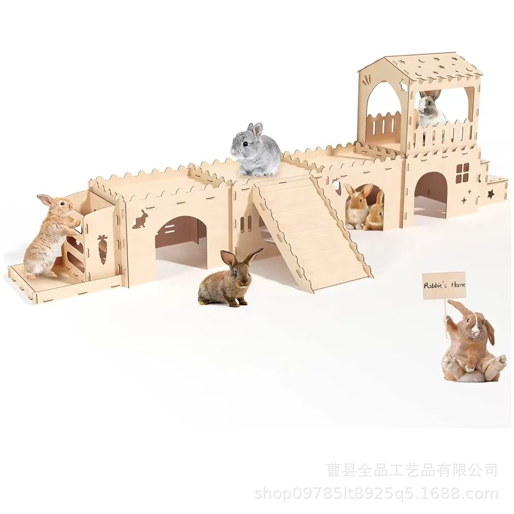 Nido de conejo de madera Casa de refugio para mascotas Túnel Nido de conejillo de indias Nido de conejillo de indias Escondido de conejo enano Castillo de conejo