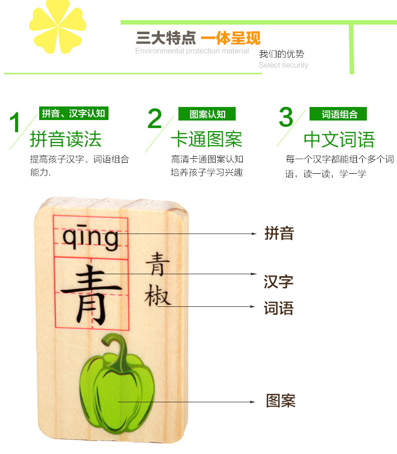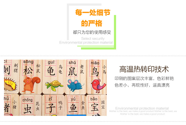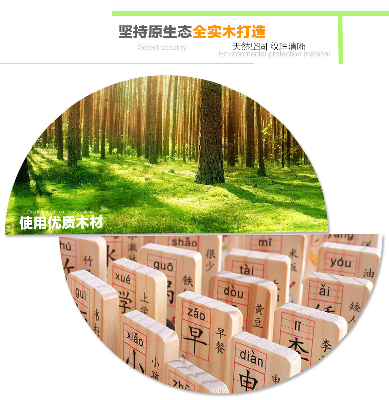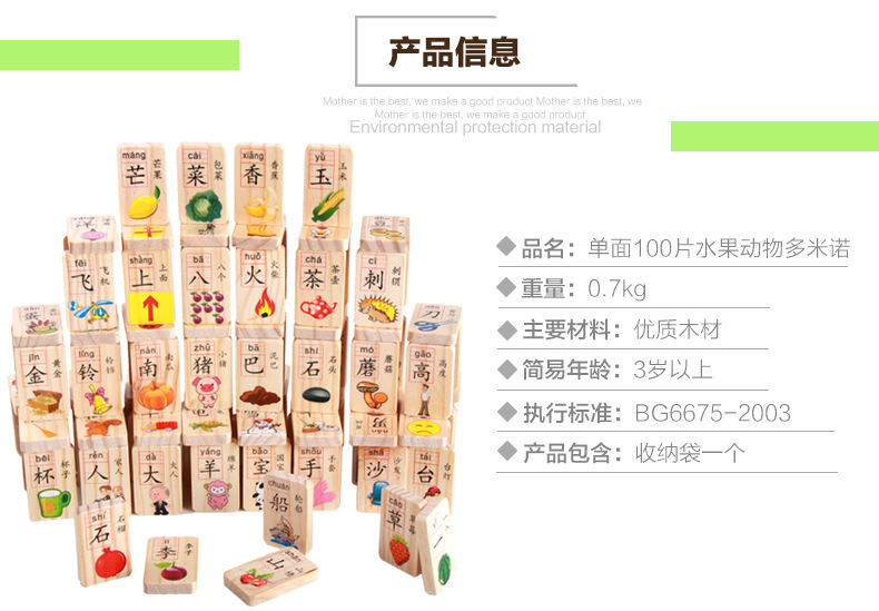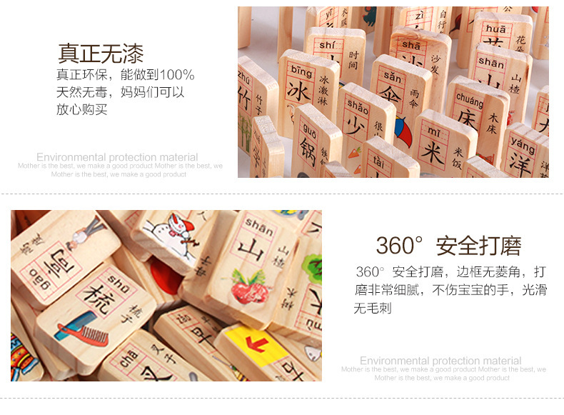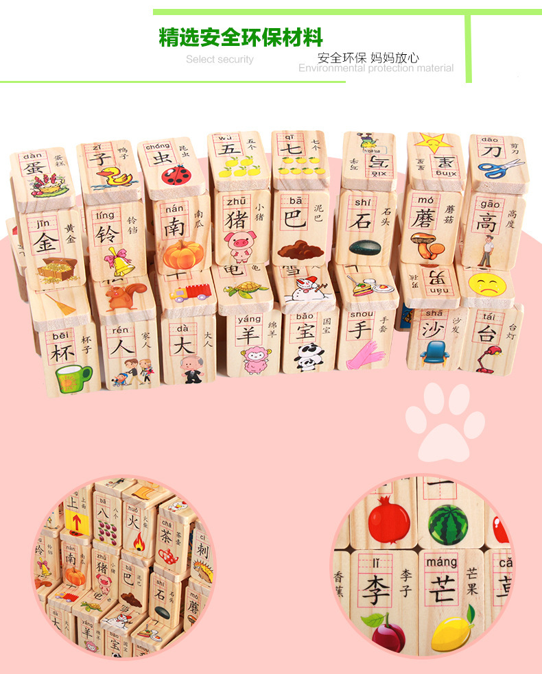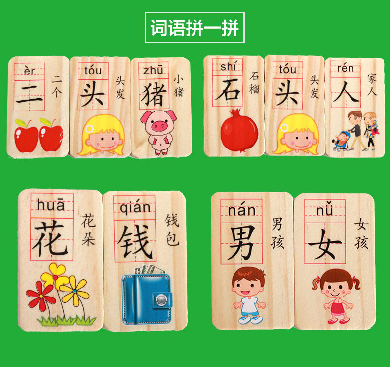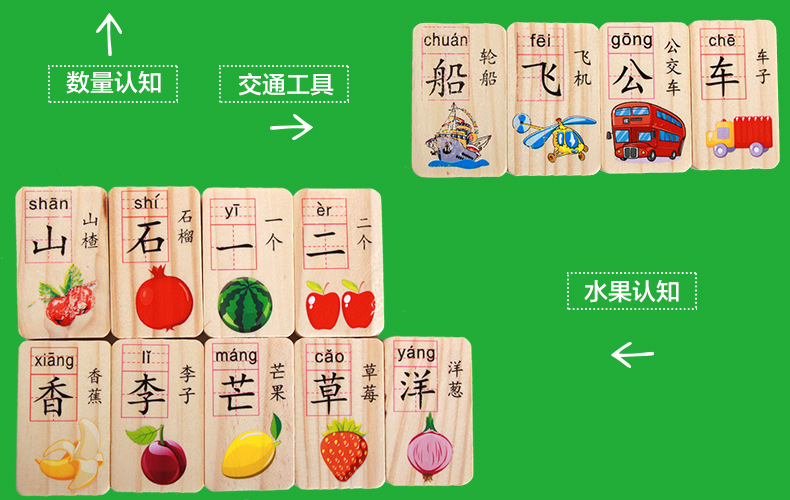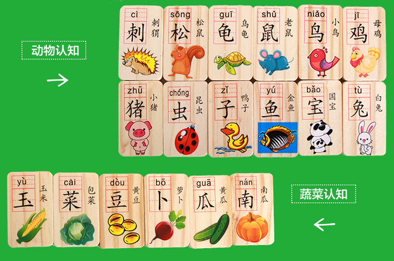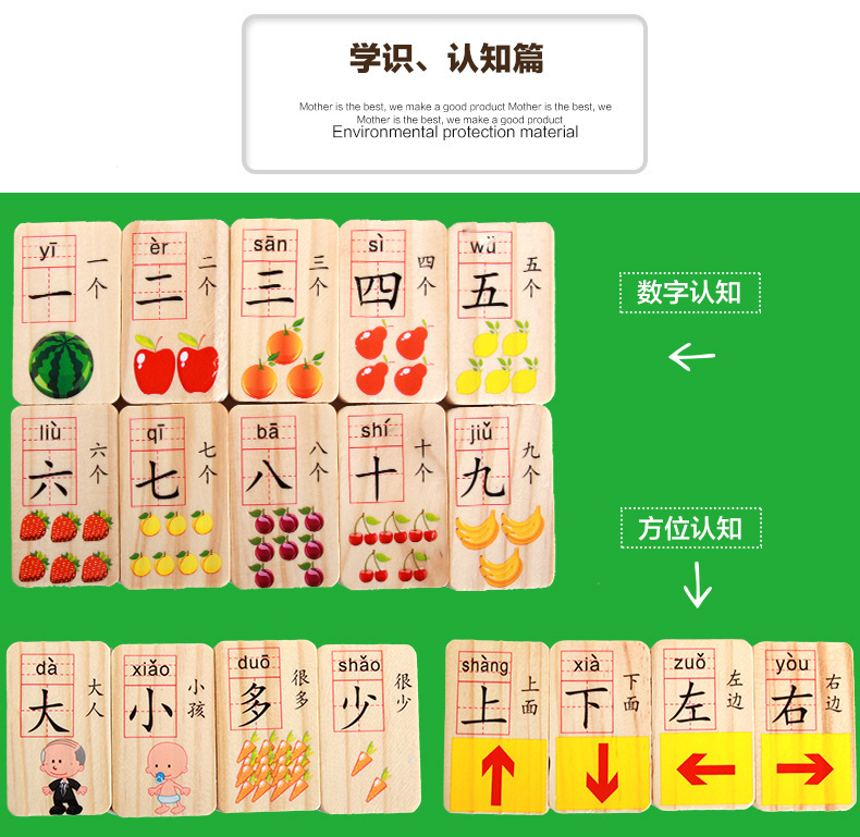 Educación infantil Educación temprana de madera de 100 piezas de doble cara Carácter chino Dominó Alfabetización juguete cognitivo