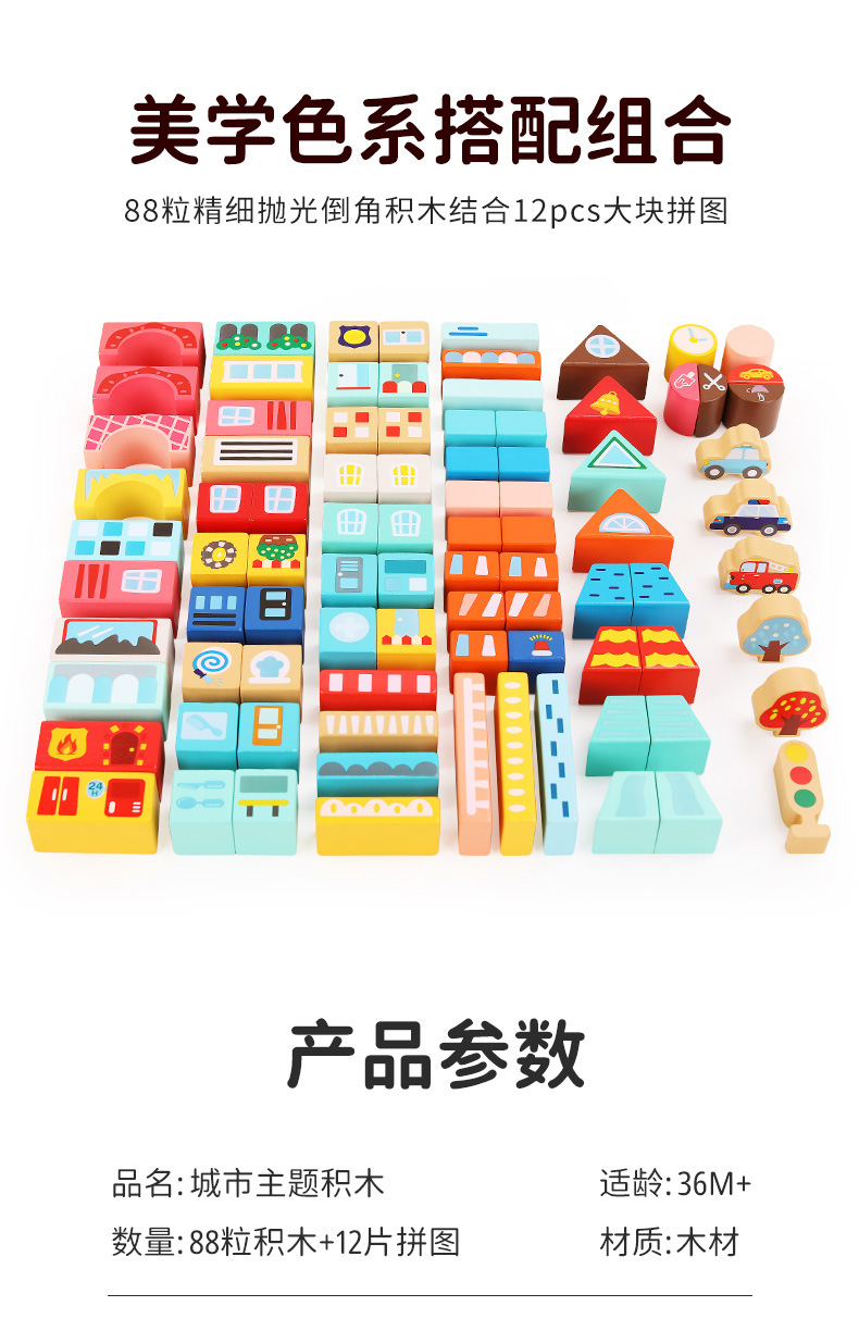 | color | [Barril] 88 bloques de construcción urbanos + 12 negativos,[Caja de madera] 48 bloques de construcción de letras numéricas |