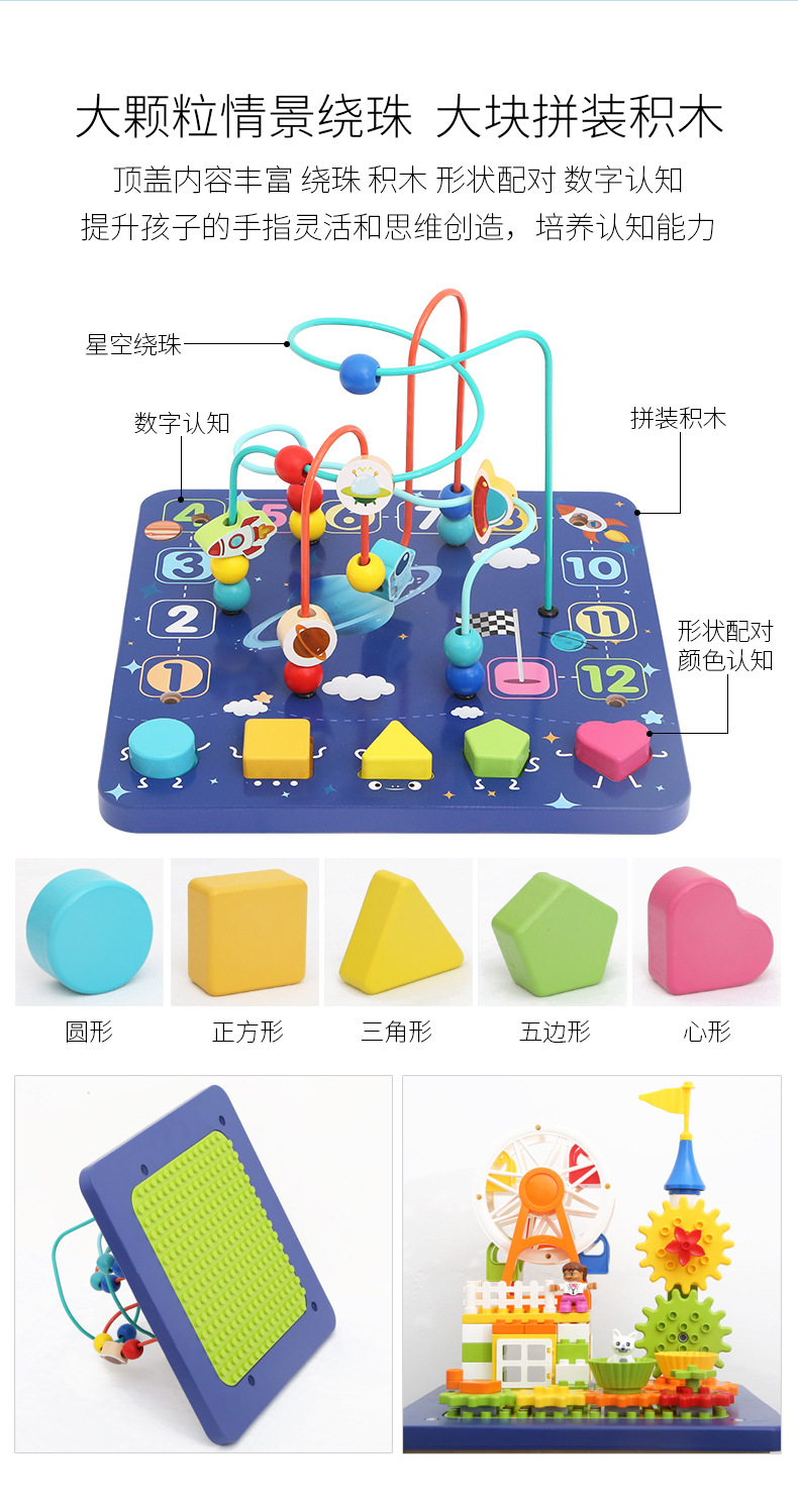 Caja del tesoro multifuncional, bloques de construcción, caja de juego alrededor de cuentas, niños, niñas, bebés, juguetes de educación preescolar, educación temprana para niños, inteligencia beneficiosa