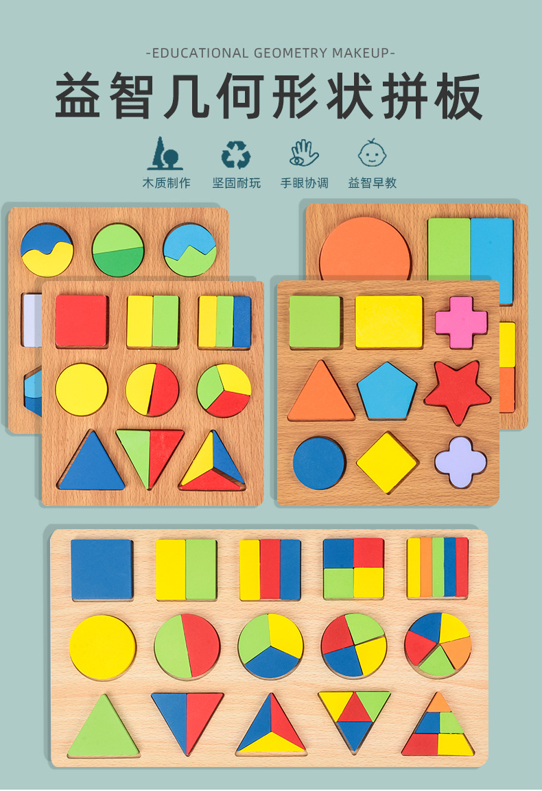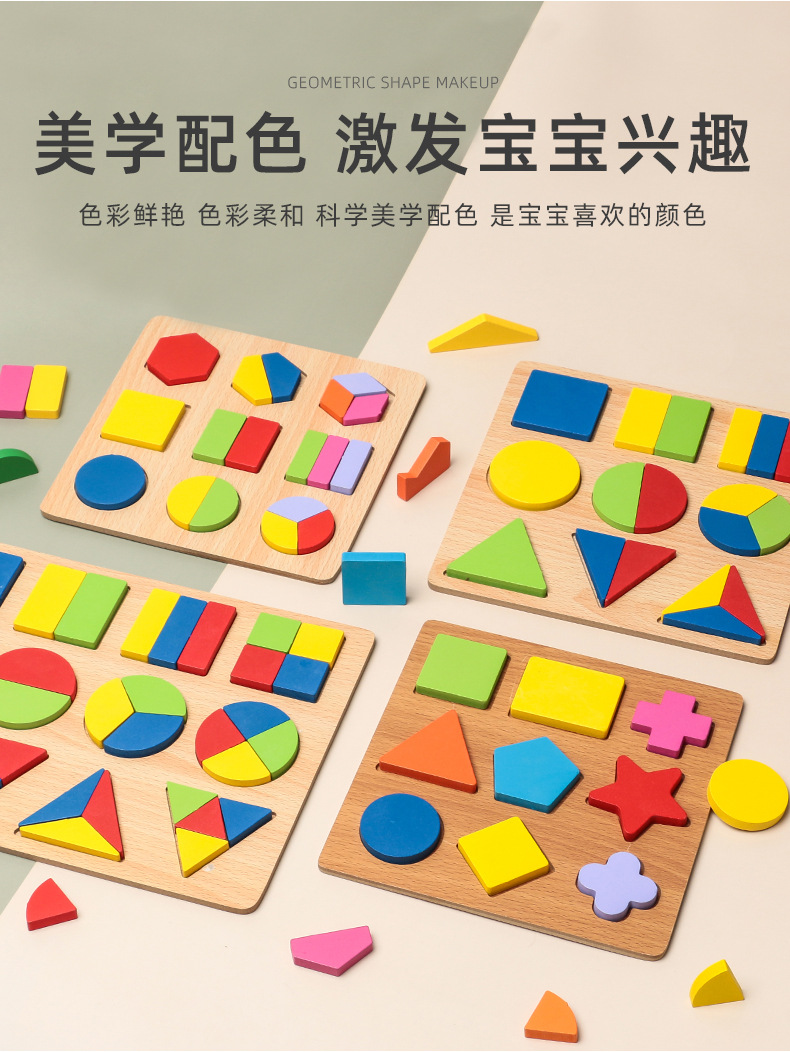 Montessori diversión madera educación temprana rompecabezas forma geométrica rompecabezas gráfico cognición kindergarten bebé juguetes