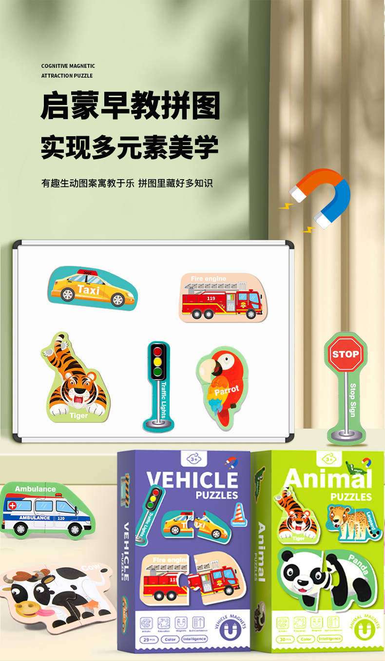 Rompecabezas magnético de educación temprana para niños 26 pegatinas de números de animales de letras 3-6 años de edad, material didáctico de rompecabezas cognitivo de jardín de infantes