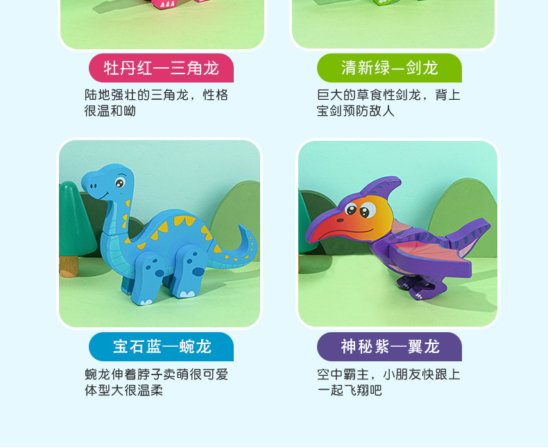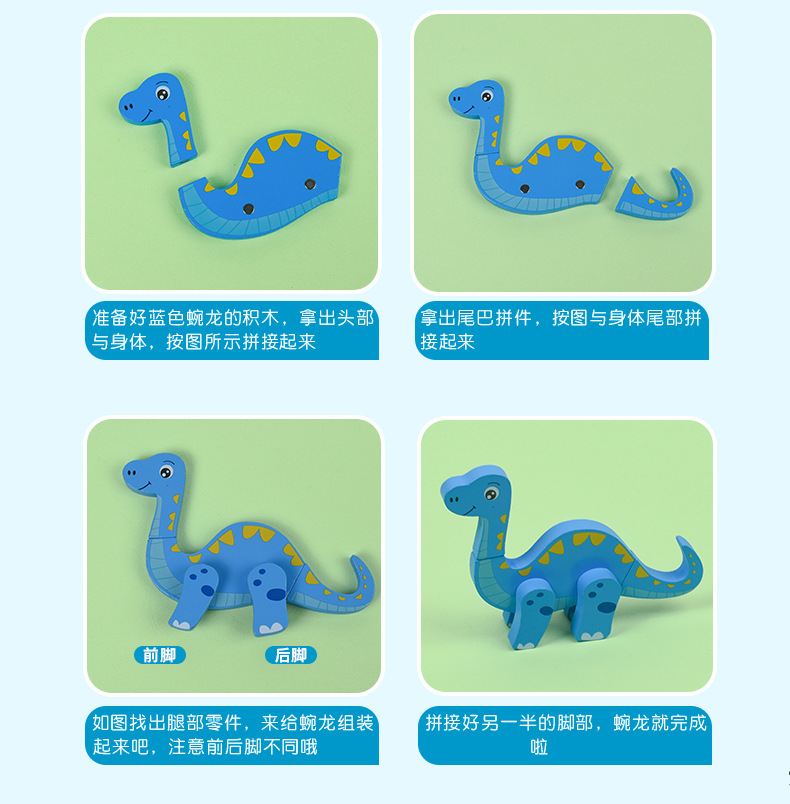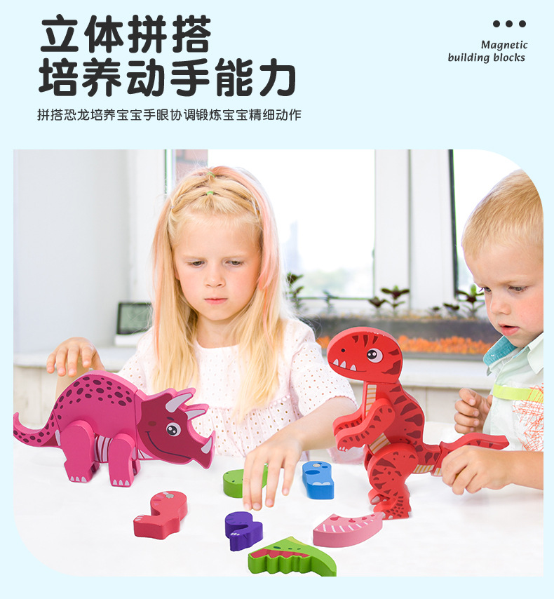 Juguetes de rompecabezas tridimensionales de dinosaurios para niños y niñas, bloques de construcción de madera 1-2-3-4-5 a 6 años