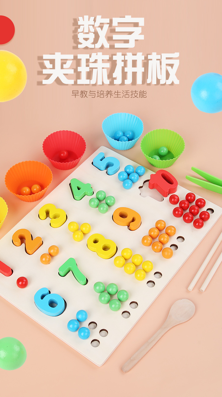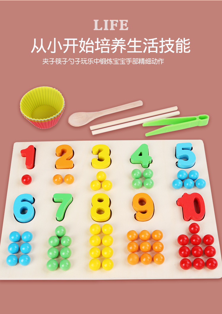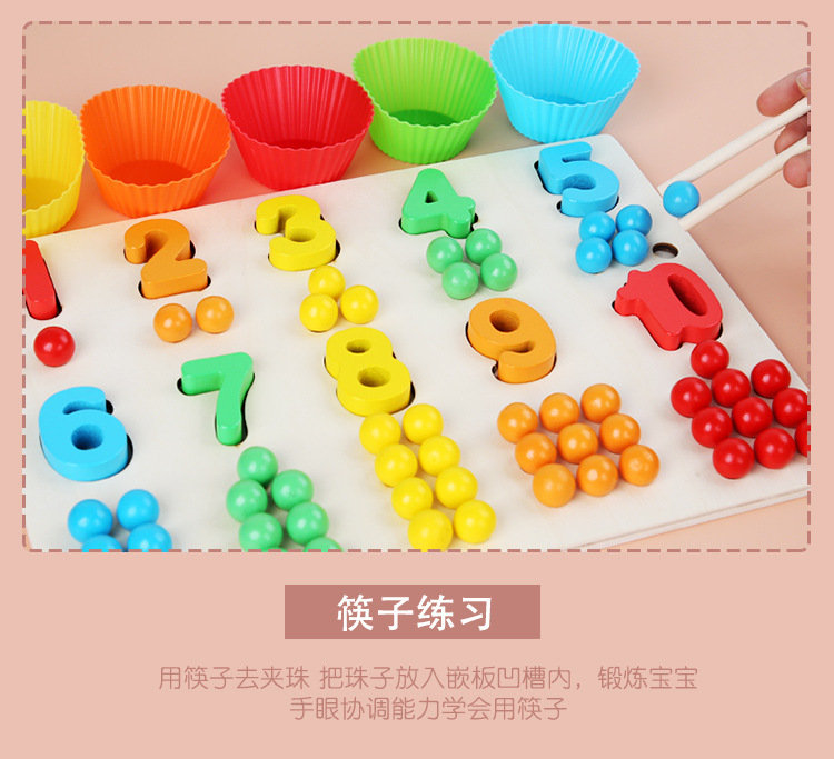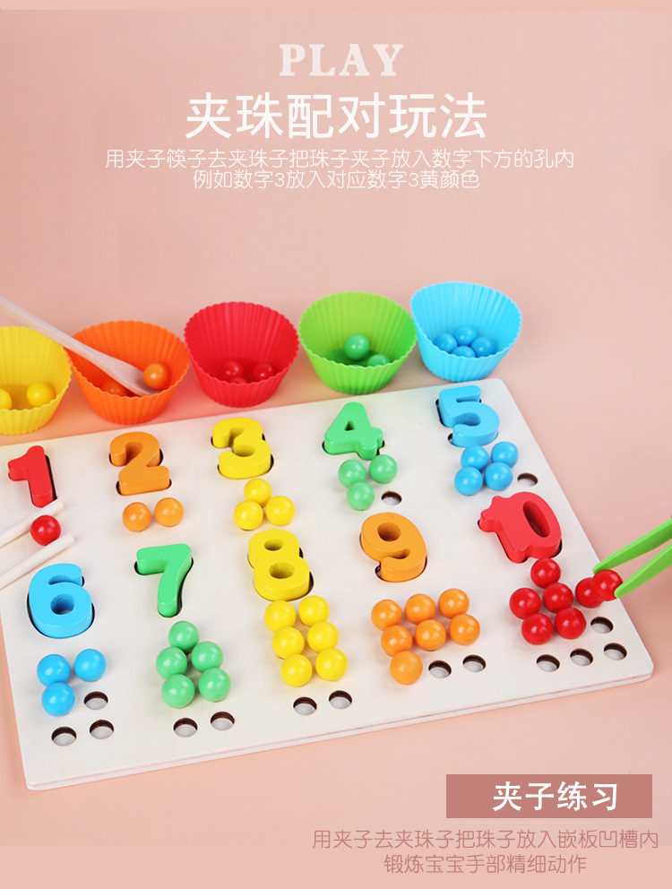 Acción fina de madera para niños Cuentas de clip Digital Color cognitivo digital a juego Interacción entre padres e hijos Educación temprana Juguetes educativos