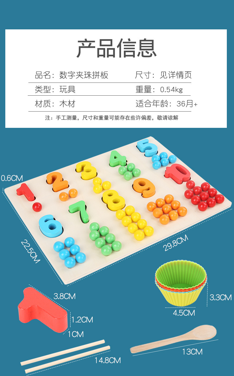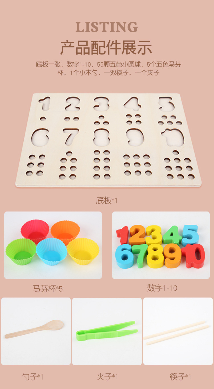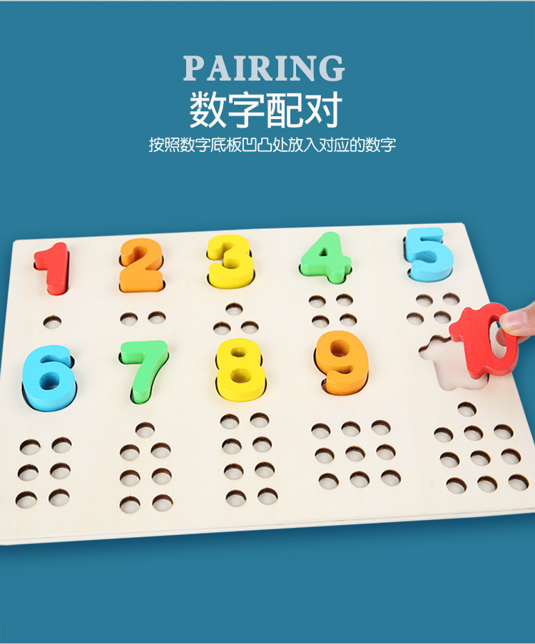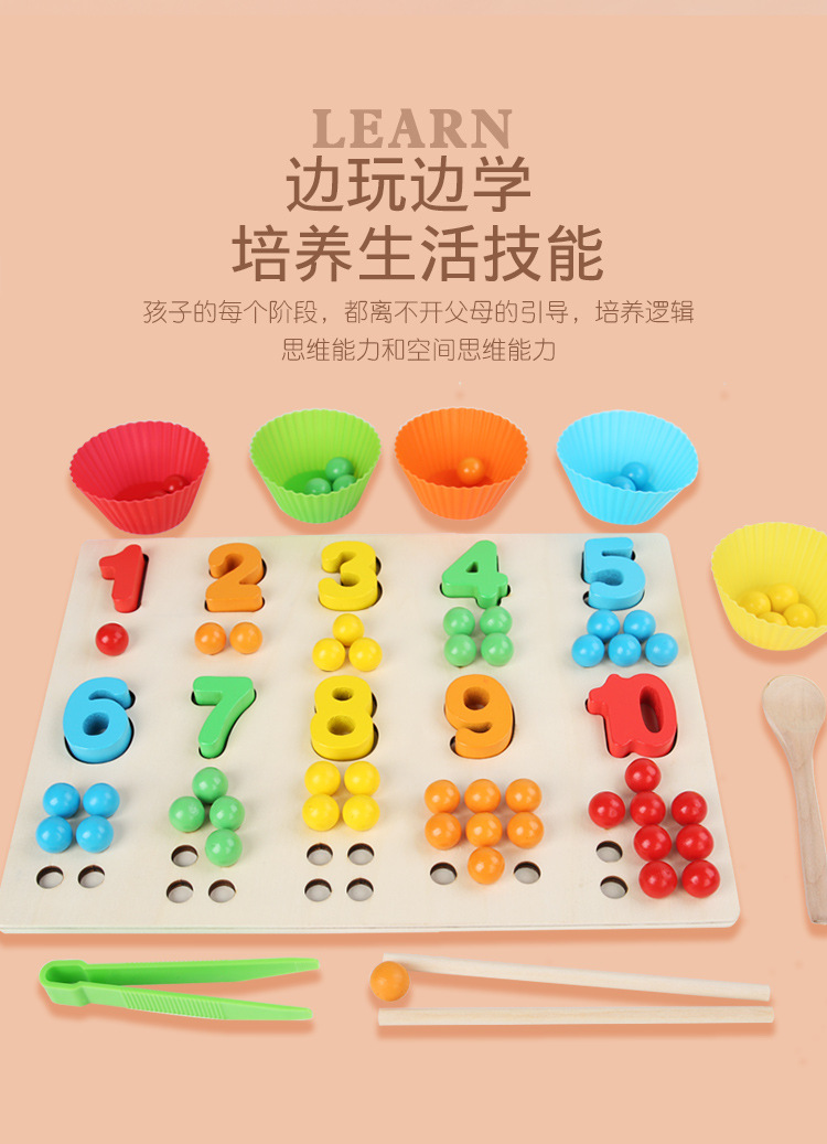 Acción fina de madera para niños Cuentas de clip Digital Color cognitivo digital a juego Interacción entre padres e hijos Educación temprana Juguetes educativos