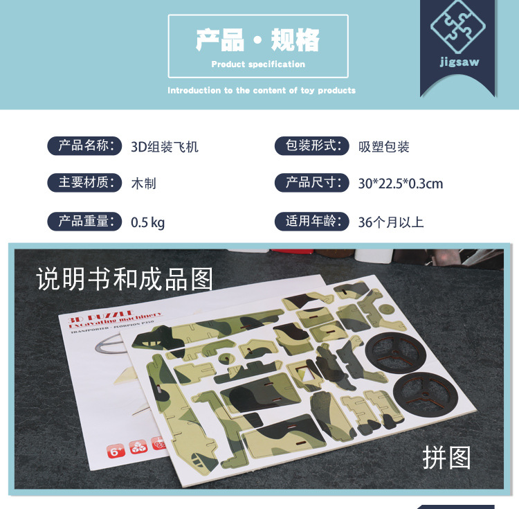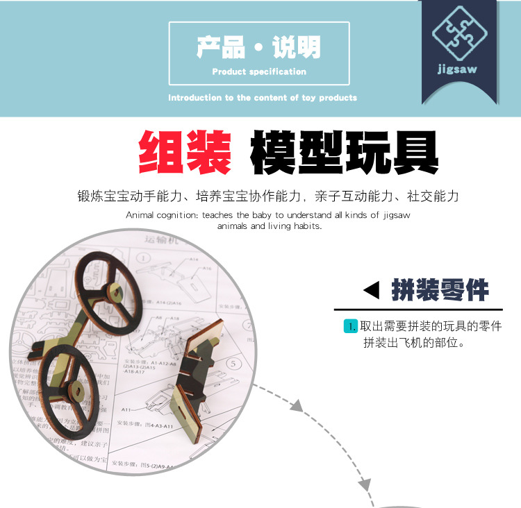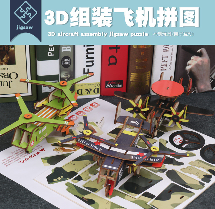 Modelo de ensamblaje de aviones 3D de madera para niños rompecabezas de desarrollo rompecabezas de juguete DIY ensamblaje de aviones rompecabezas tridimensional