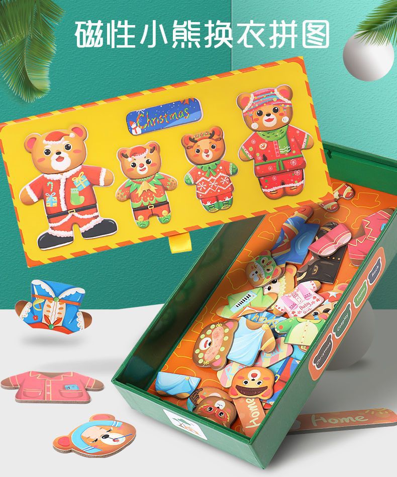 Caja de regalo magnética rompecabezas de madera para niños juguetes educativos para niños educación temprana dibujos animados niños y niñas 3-4-5-6 años