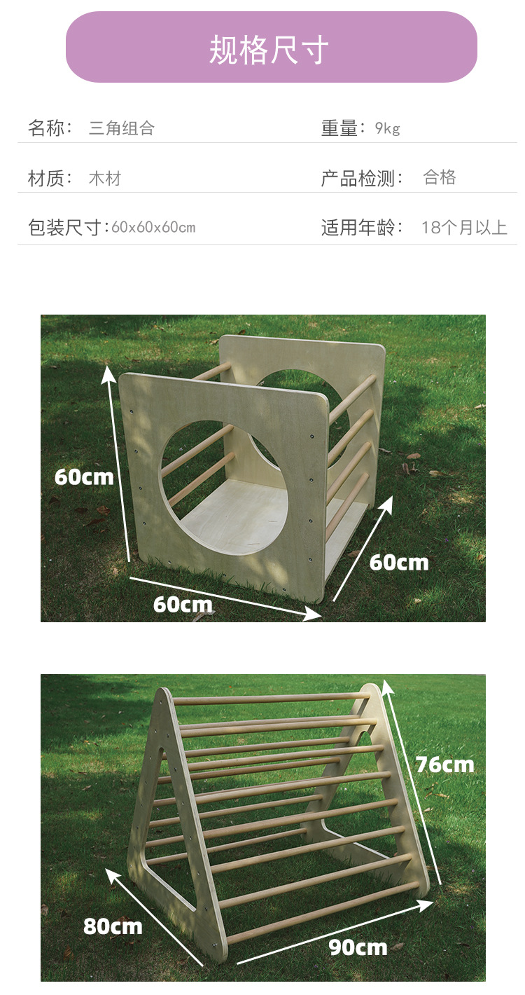 Estante de escalada infantil de madera Estante de escalada para niños Triángulo Estante de entrenamiento físico Estante de escalada Túnel de juguete de aventura para niños
