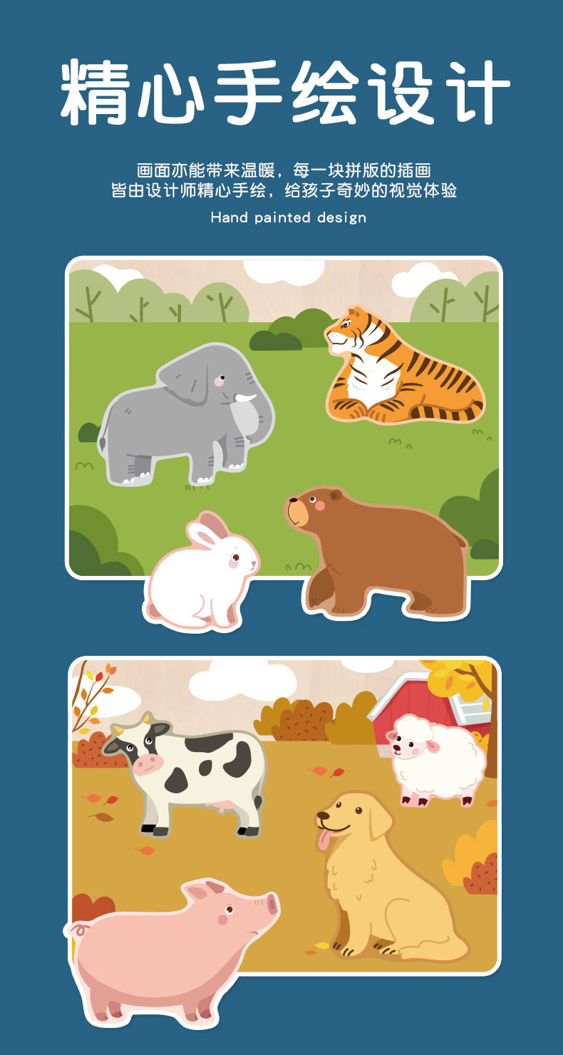 Rompecabezas DE LA Ilustración de madera para niños rompecabezas de educación temprana cognición básica Piel Animal Bosque de Madera Juguetes interactivos entre padres e hijos