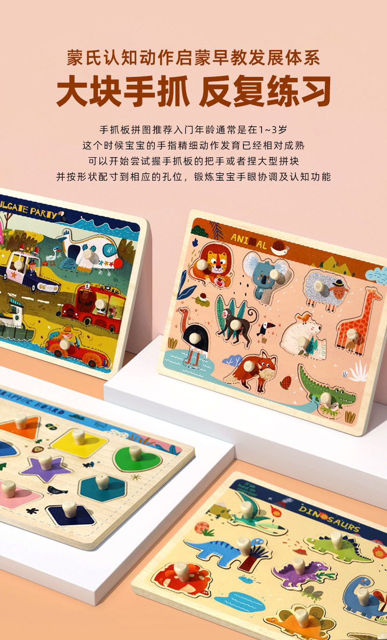Montessori educación temprana tablero de mano rompecabezas bloques de construcción bebé niños forma a juego panel 1-2 años de edad bebé juguetes educativos